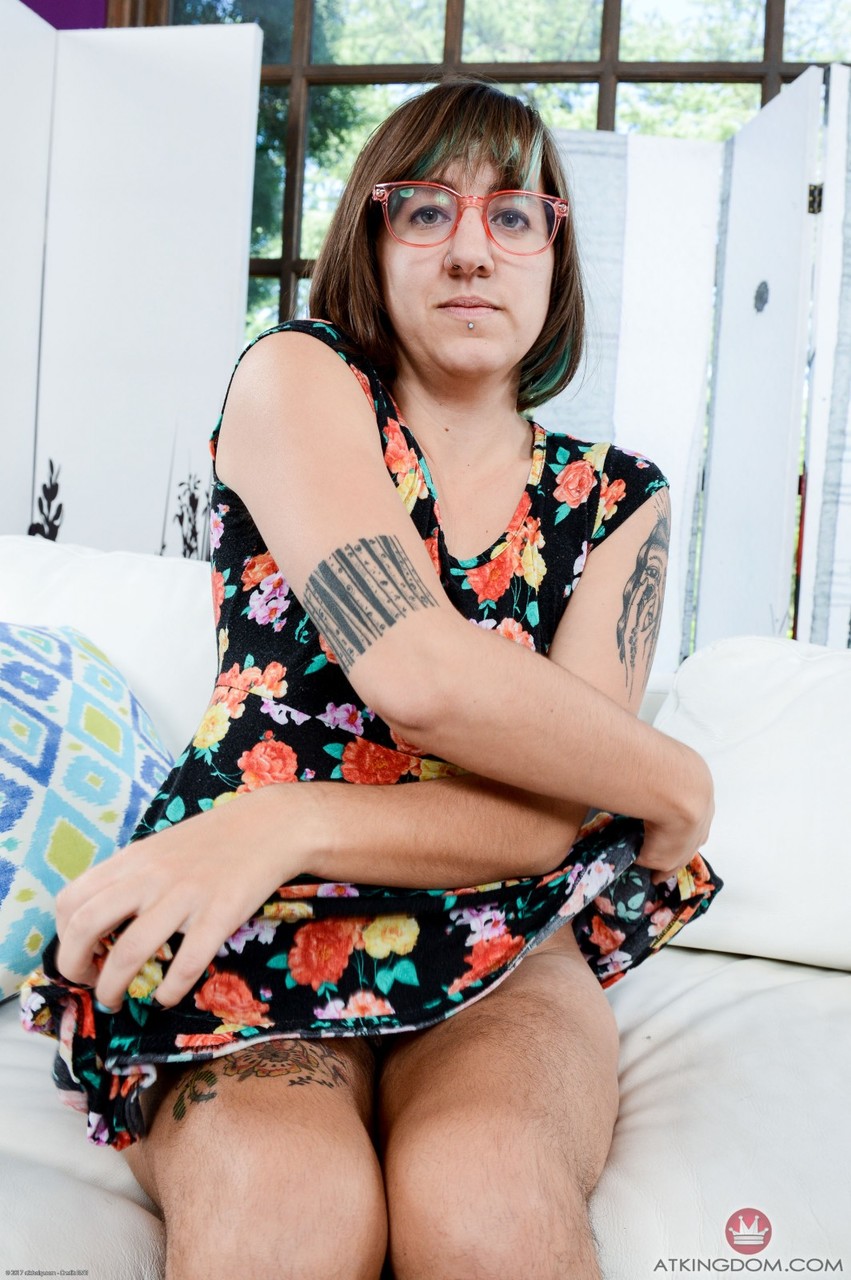 السمراء ذات الوشم أنيكا دارلينغ تغازل بكسها المشعر العصير ومؤخرتها في لقطة قريبة، نظارات، برواز كبير أماتور تحت التنورة منفردة.