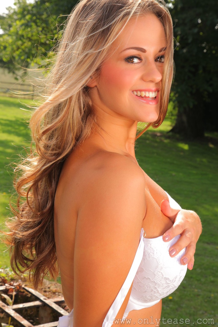 الجميلة المذهلة Zoey Bennett في جوارب النايلون الحمراء تتعري في الهواء الطلق