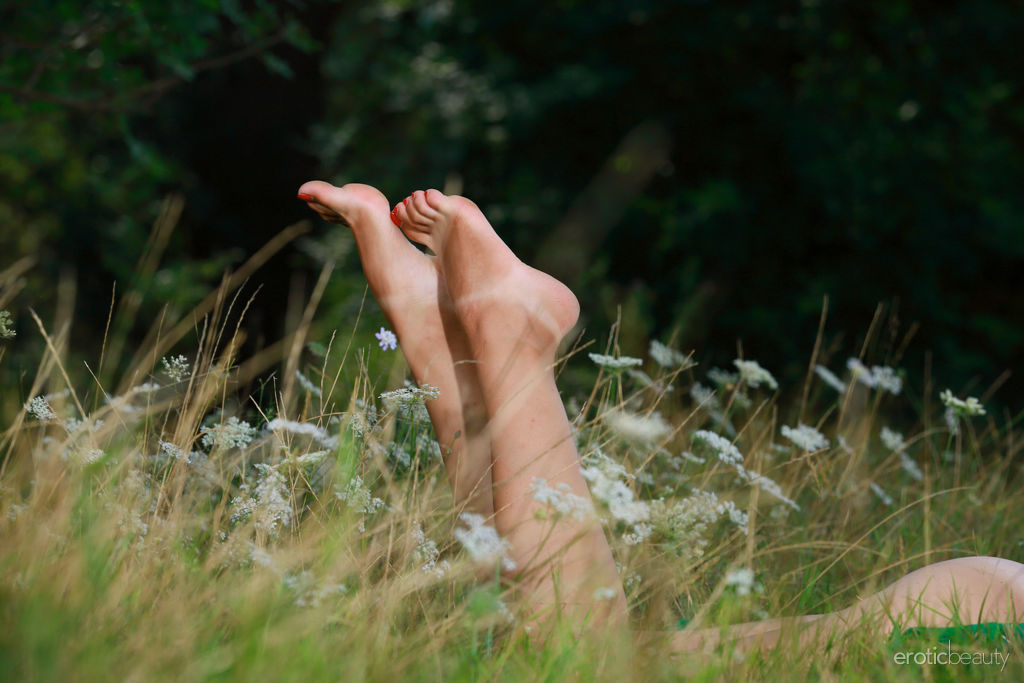 المراهقة هايلي تتعري لتتخذ أوضاعًا عارية على بطانية في حقل - معلومات المعرض