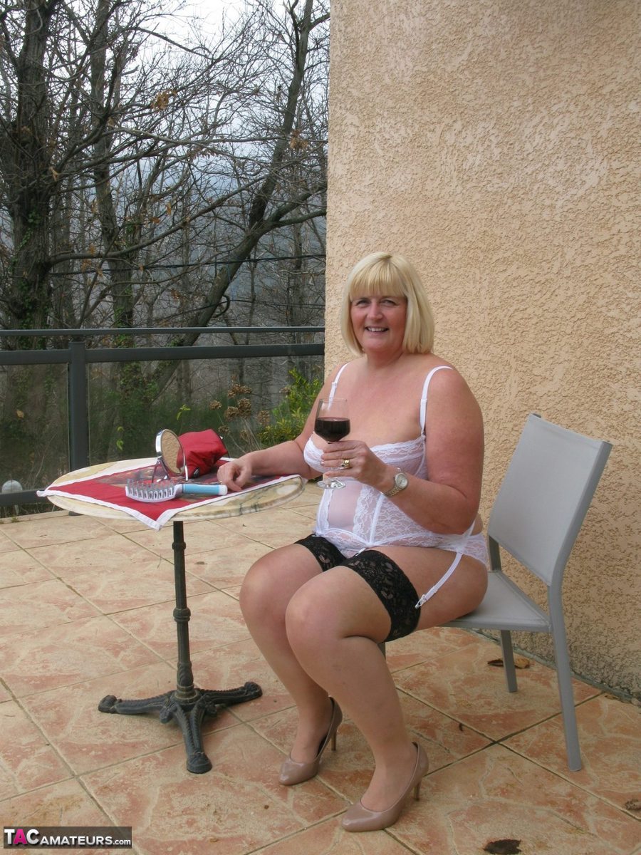 كريسي المملكة المتحدة: سمراء شقراء كبيرة السن تضع المكياج ثم تكشف عن ثدييها الكبيرين - معلومات المعرض