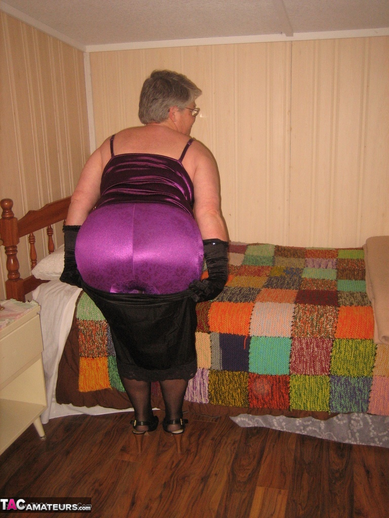 إلهة الحزام امرأة سمينة تتعرى في غرفة النوم مرتدية قفازات سوداء - معلومات المعرض