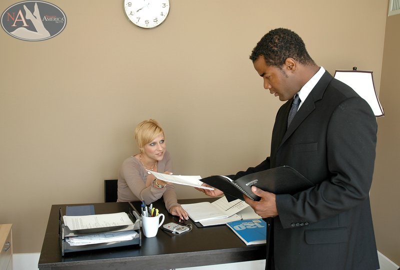 البلonde مكتب ببي امبر وايلد تحب لذة لامسة و الجنس بين العرقيات - معلومات المعرض
