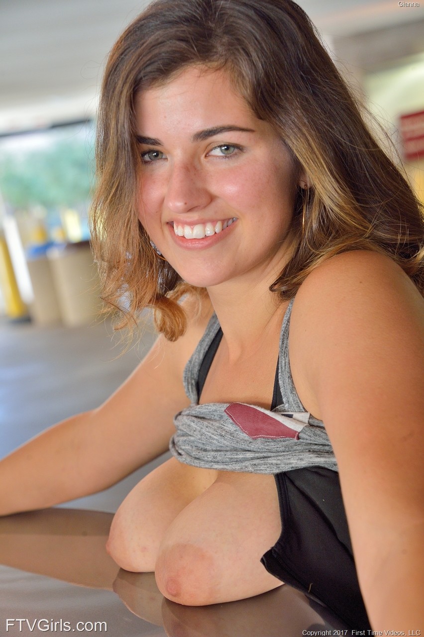 الهاوية ذات الثدي الكبير جيانا تُظهر ثدييها الكبيرين في الهواء الطلق - معلومات المعرض