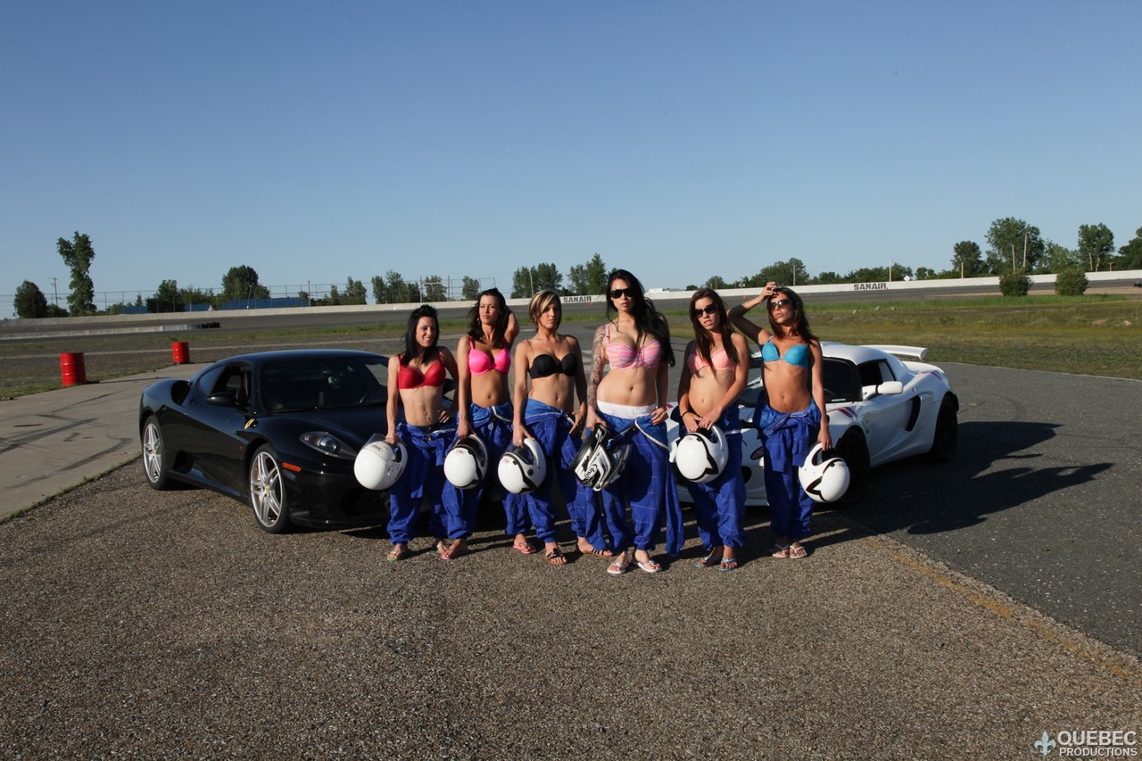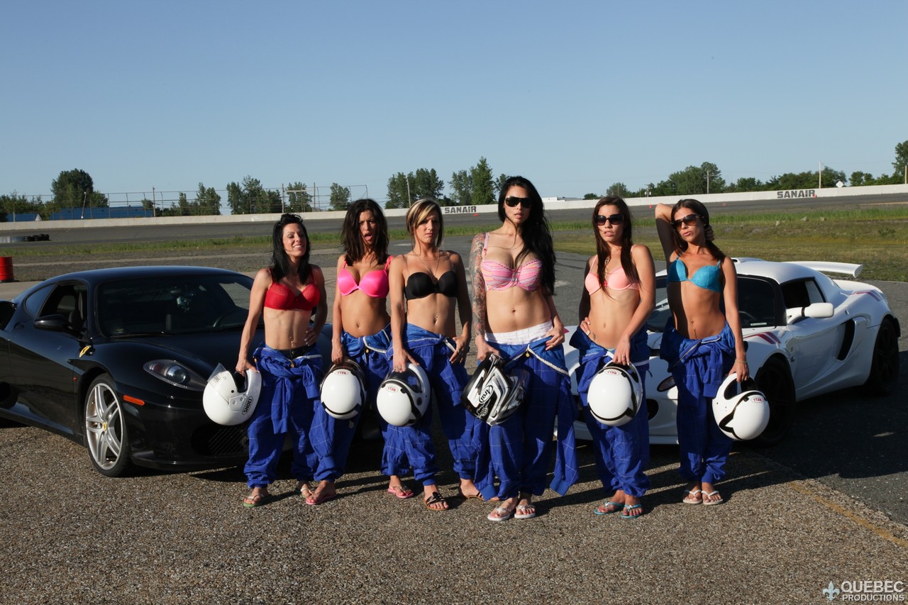سائقات السباق الآسيويات الناضجات يتعرين توبليس في الهواء الطلق، يتباهين بثدييهن الضخمتين بالمايوه والنظارات—جلسة تصوير سيارة ساخنة مع نجمة إباحية تلميذة مثيرة.