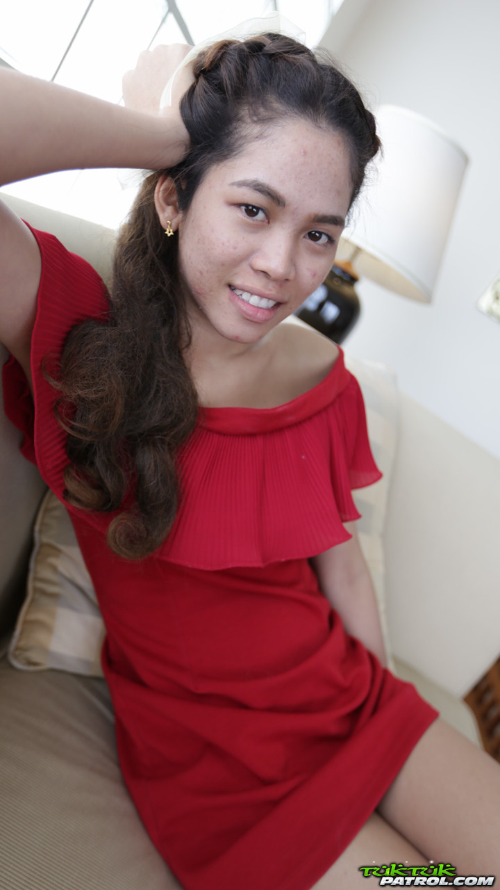 مي الآسيوية الجميلة تُظهر ساقيها الساخنتين في فستان أحمر - معلومات المعرض