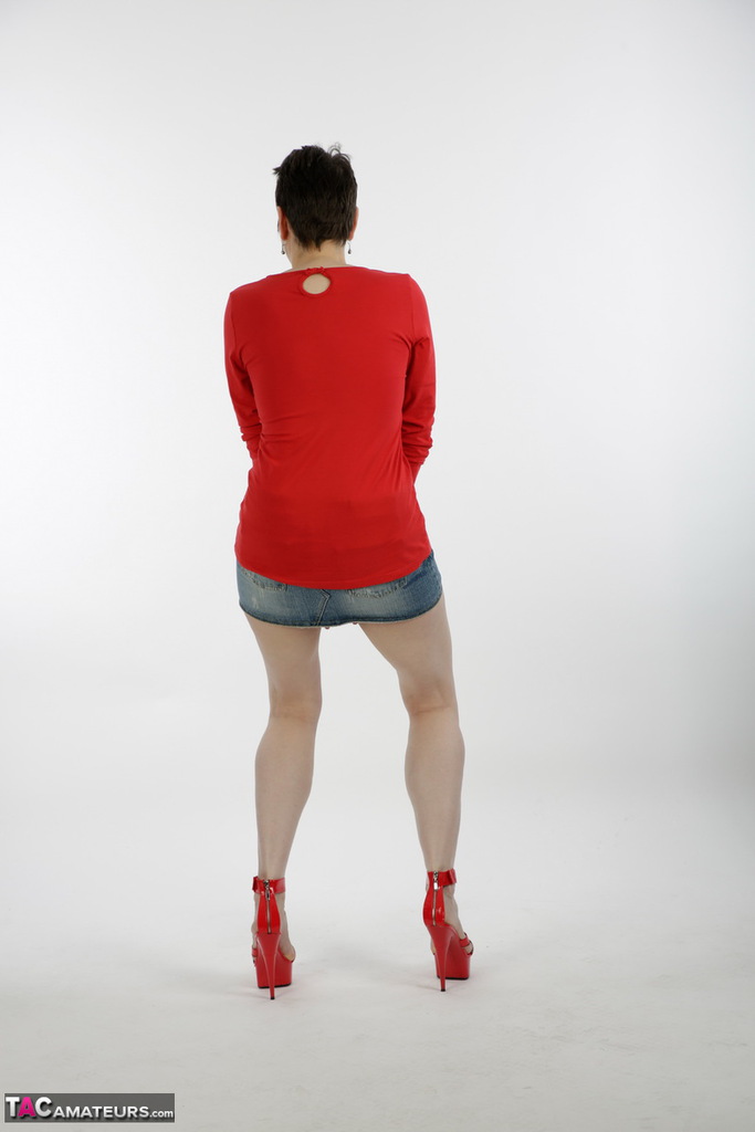أم شقراء قصيرة الشعر الماكرة تتحرش بلباس ضيق وحذاء أحمر، تتعرى ببطء لتكشف عن منحنياتها البدينة. شاهد هذه المرأة الأوروبية الناضجة الهواية تفتح ساقيها وتعرض مؤخرتها الكبيرة في رقصة استعراضية ساخنة تحت التنورة.