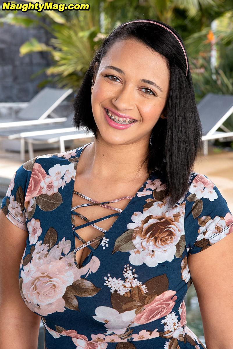 اللاتينية المشهورة إيموري بليزر تغازل في عرض منفرد تحت التنورة، تكشف عن صدرها الكبير وجسدها الممتلئ مع تقويم الأسنان، مراهقة جميلة بدينة.