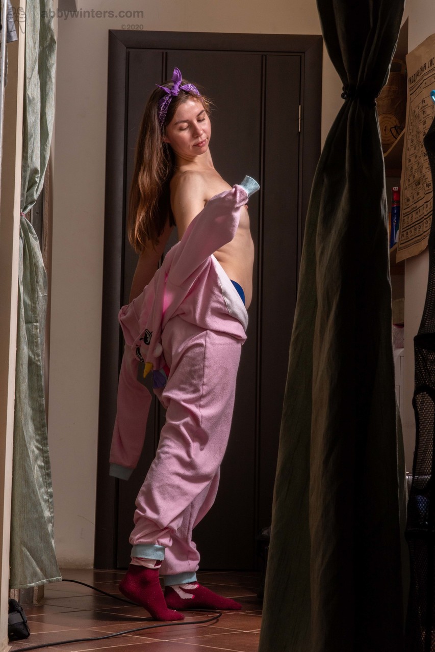 كريستينا، فتاة أسترالية مثيرة، تغوي ببيجاما ساخنة وملابس داخلية قطنية. هذه الفتاة البنية الجميلة تُظهر ثدييها الصغيرين وجواربها اللطيفة في معرض منفرد بخاري غير عاري.