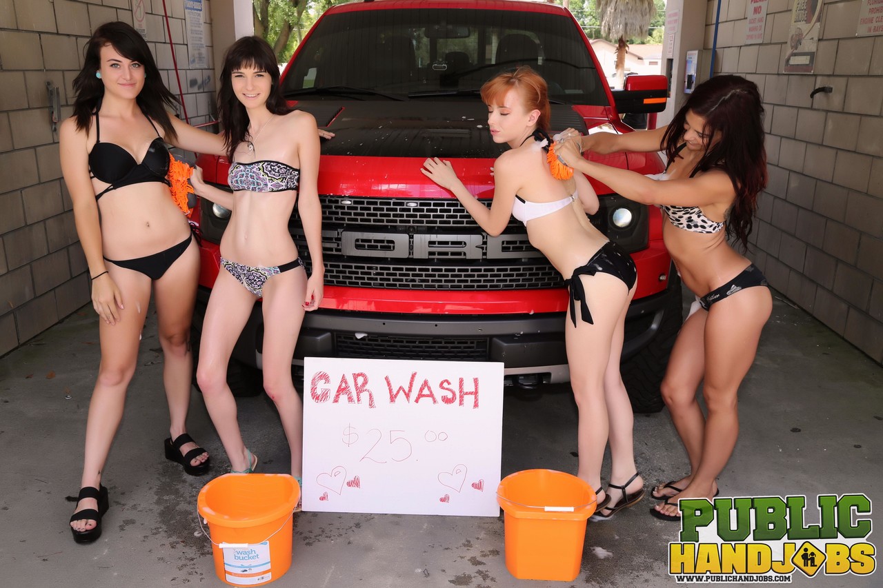 فتاة غسيل السيارات الخبيثة Chloe Sky تظهر صدرًا صغيرًا وتقدم يدها - معلومات المعرض