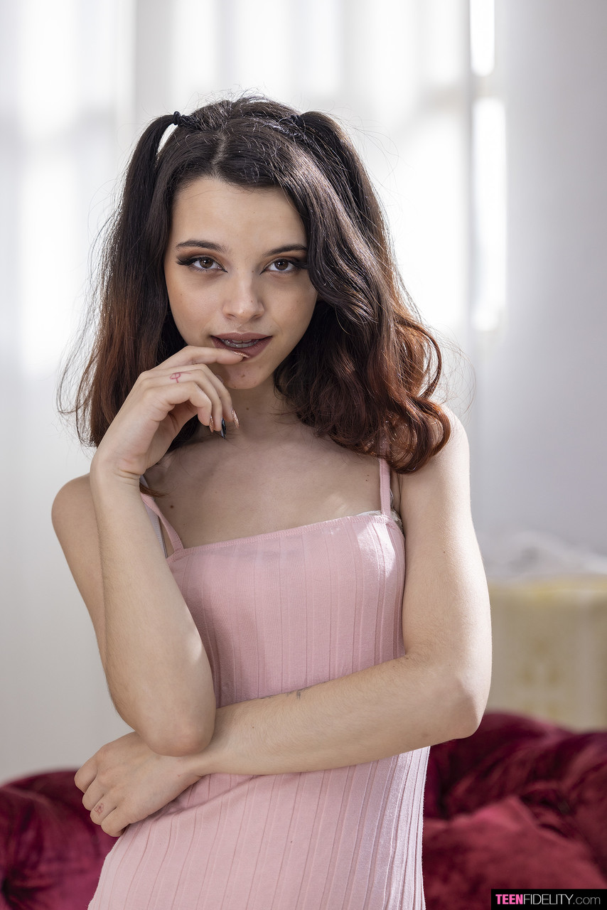 المراهقة الأمريكية الصغيرة أوهانا تغازل في ملابس داخلية، تكشف عن ثديين صغيرين ومؤخرة مشدودة في رقصة تعري بطيئة. الفتاة ذات الشعر البني الجميل تفرد كسها البريء، تُظهر ساقيها الموشومتين في مشهد منفرد حصري.