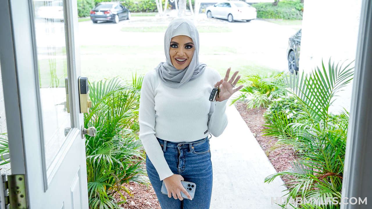 Brazilian MILF Vivianne DeSilva strips jeans and lingerie, flaunting big natural tits and juicy ass before hijab taboo doggystyle POV and 69 titjob climax