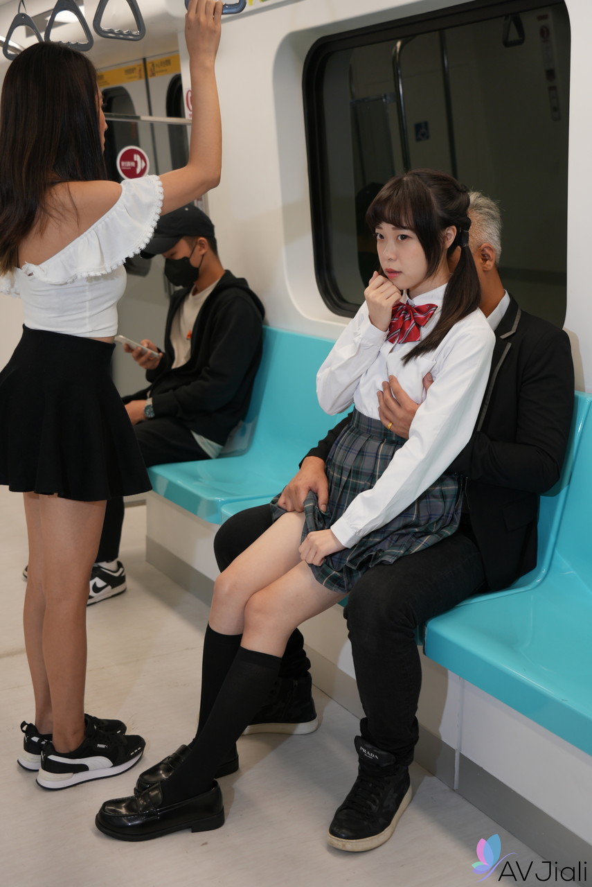 Asian schoolgirl Yuli teases in uniform on train, flashing panties before doggystyle sex with senior; Chinese teen’s tight pussy grips small cock, public blowjob, outdoor cumshot, short hair, non-nude tease.
