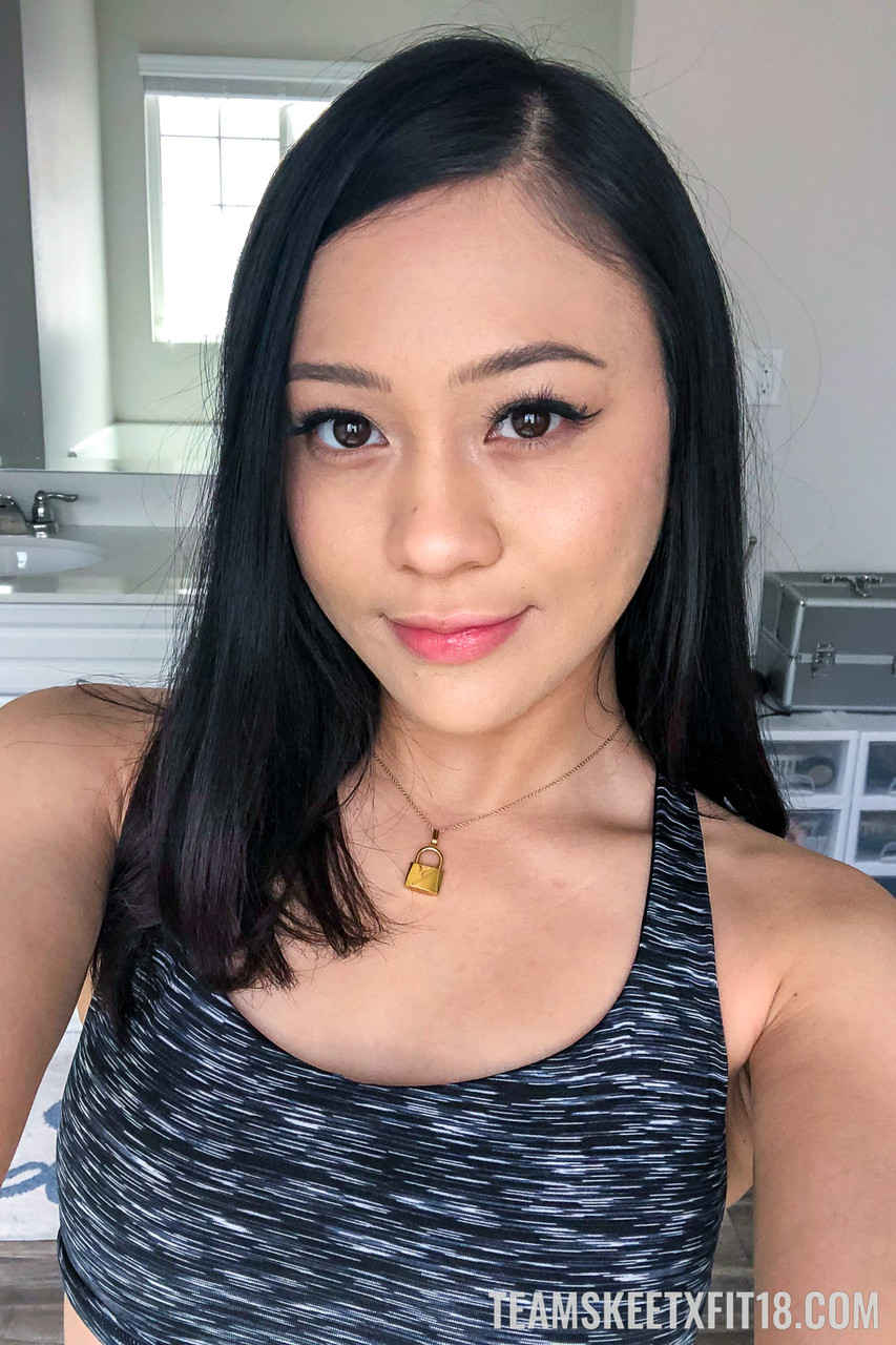 Petite Asian teen Jasmine Grey peels off yoga pants to flaunt tiny tits, pierced nipples and tight ass in homemade selfie solo.