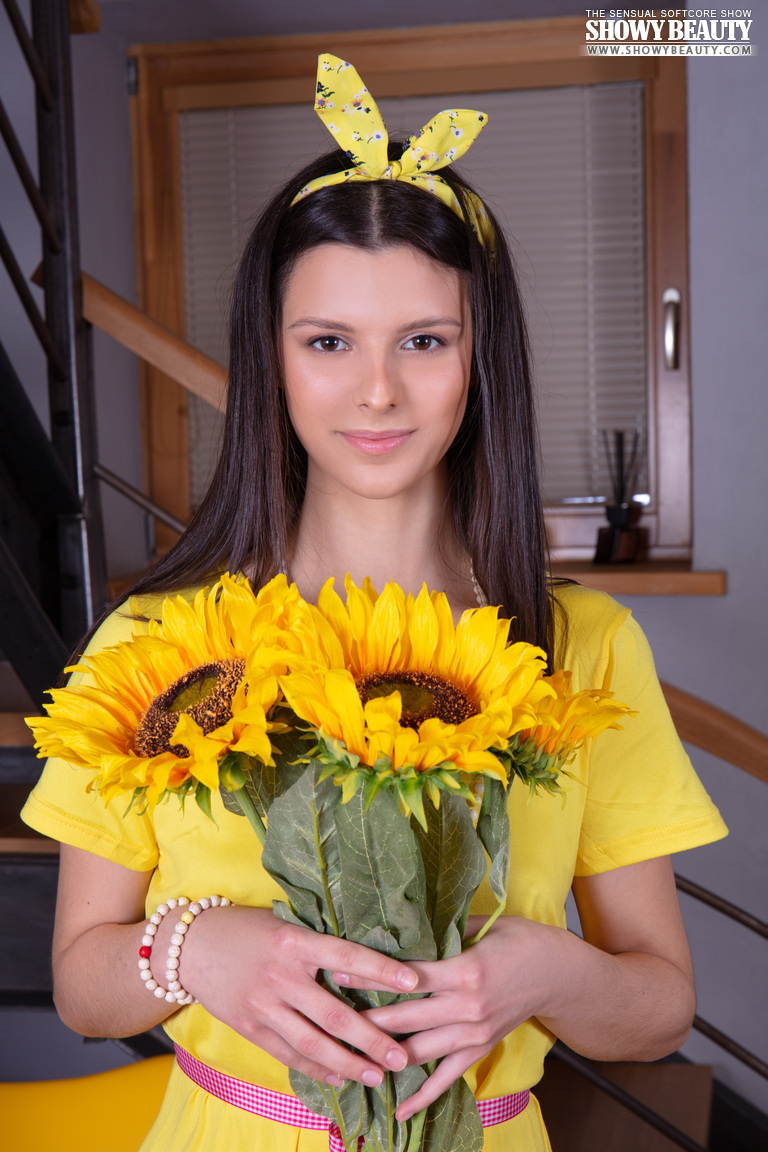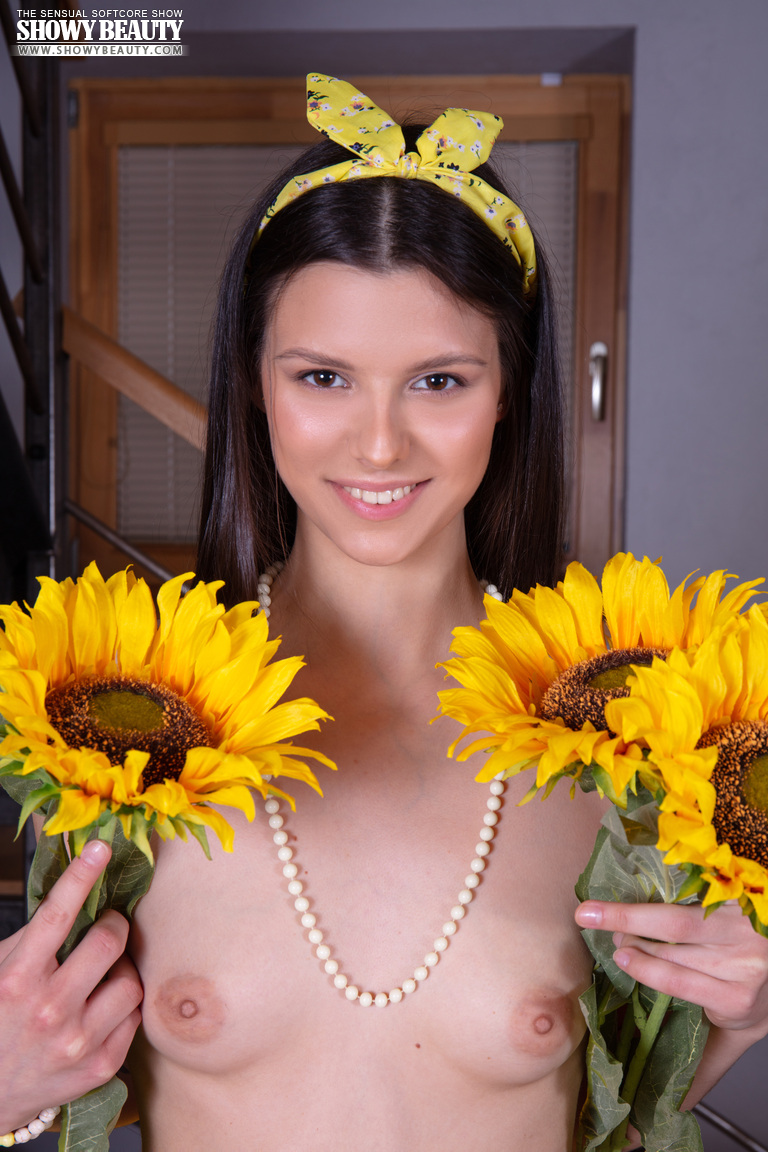 Adorable Brunette Teen Amelia Grace Holds Sunflowers While Getting Bare Naked - Gallery Information