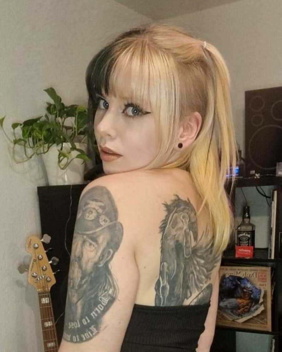 Horny inked blonde babe Kirajameson strips to black lingerie, flaunting tattooed curves, perfect ass and pretty face in amateur solo tease.
