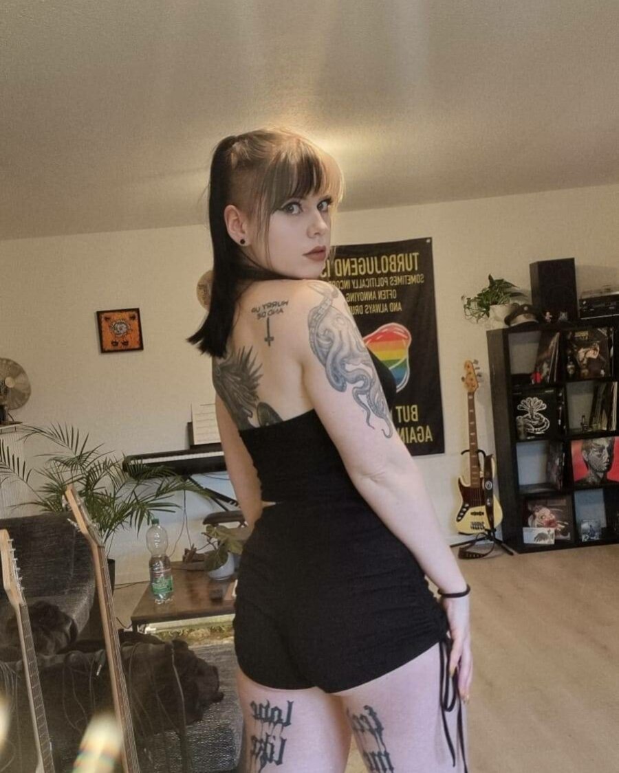 Kirajameson, Horny Inked Amateur Babe, Flaunts Curves In Black Lingerie - Gallery Information