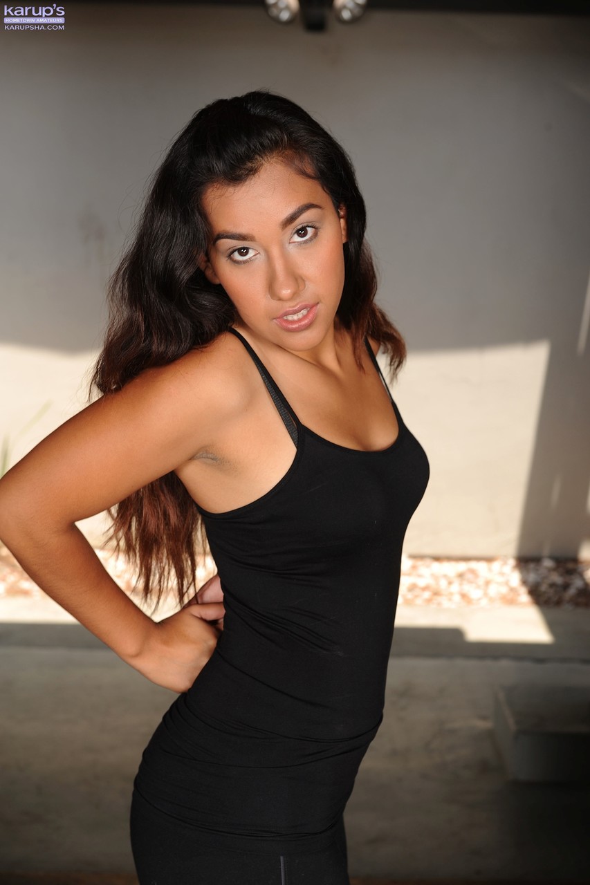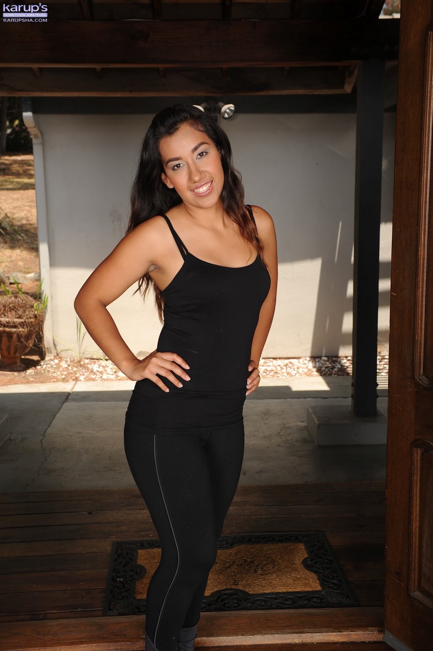 Luzbel Bugatti strips out of yoga pants to flaunt hairy latina pussy and tight asshole in amateur Karups spread.