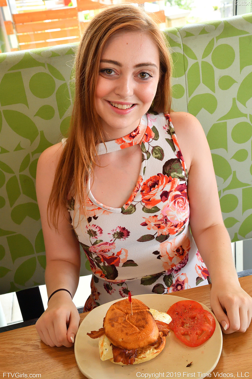 Natural redhead Sutton flashes upskirt panties outside, spreads amateur pussy in sandals, dildos perfect teen ass under sun.
