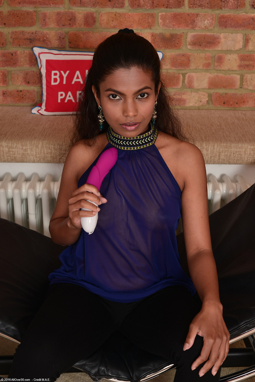 Watch sexy amateur Alishaaa Mae strip, spread her hairy Indian pussy and ride a dildo deep while teasing feet and asshole in hot solo Desi MILF action.
