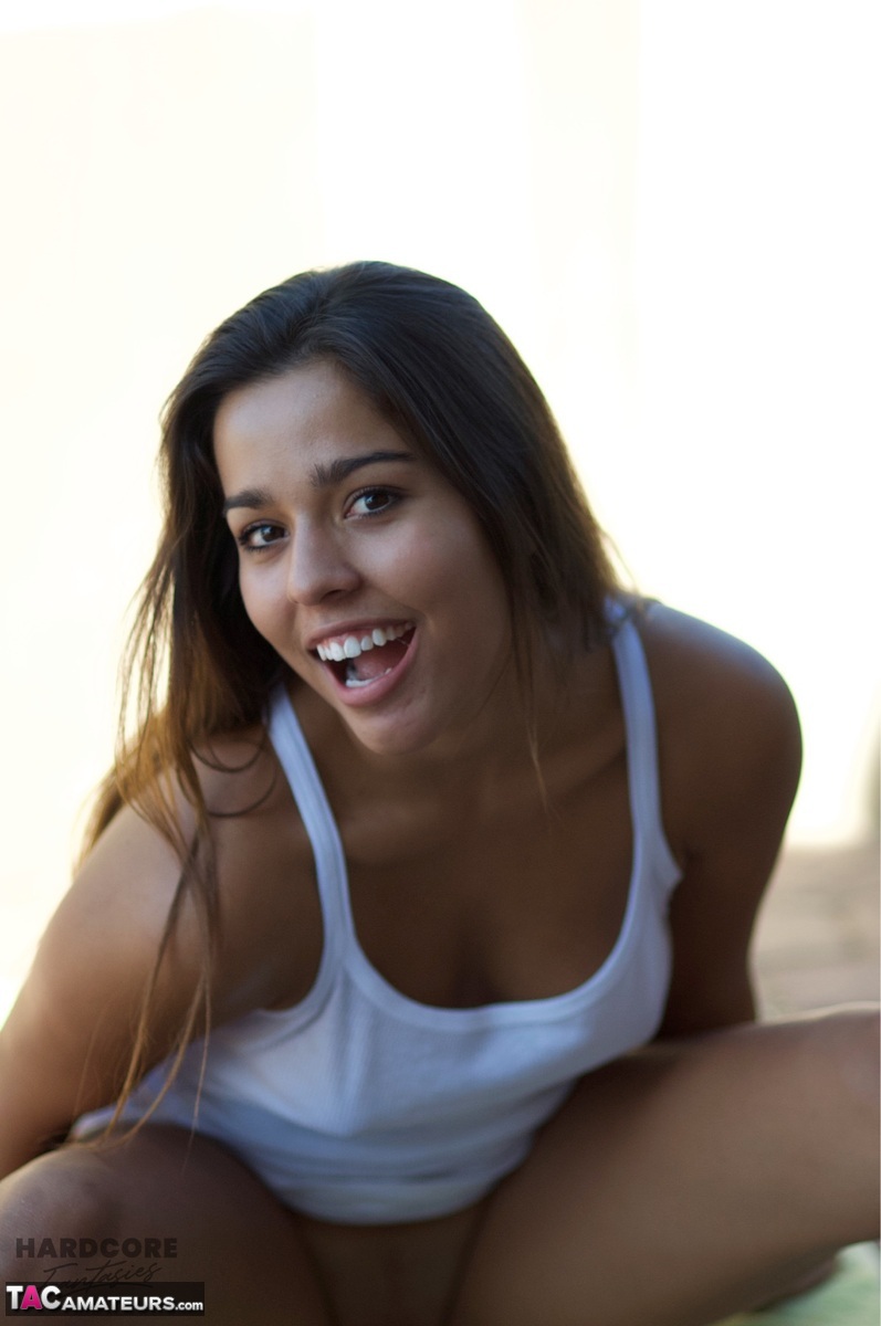 Totally Naked Brunette Teen Shows Off Her Hairless Pussy