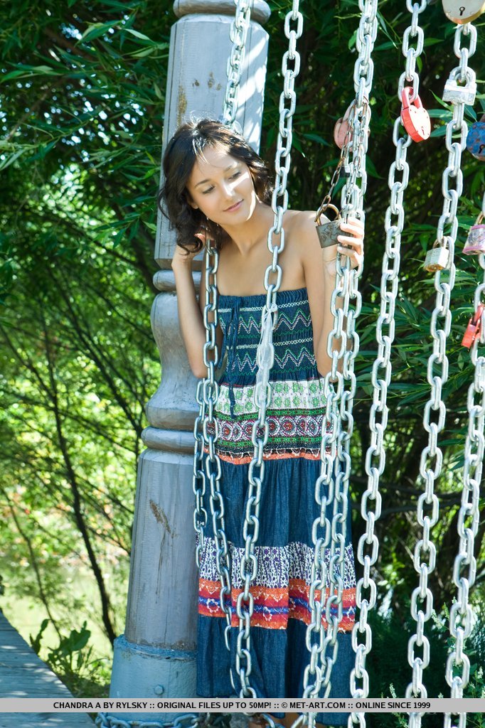 Watch skinny brunette Chandra A strip outdoors, flashing upskirt no panties before spreading to reveal her lush hairy teen pussy and tight ass in solo erotica.