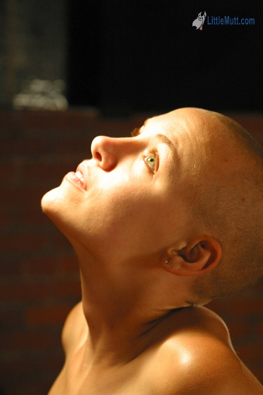 Young Karissa With Shaved Head Rubs Her Bald Pussy Nude - Photo 3 / 16