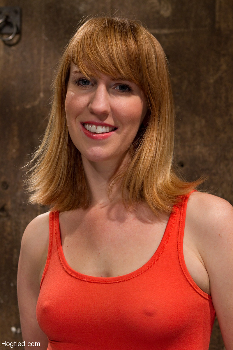 Bound blindfolded ginger Mallory Mallone gets toyed in BDSM bondage, tied up, big tits, feet, spreading pussy, pretty white submissive