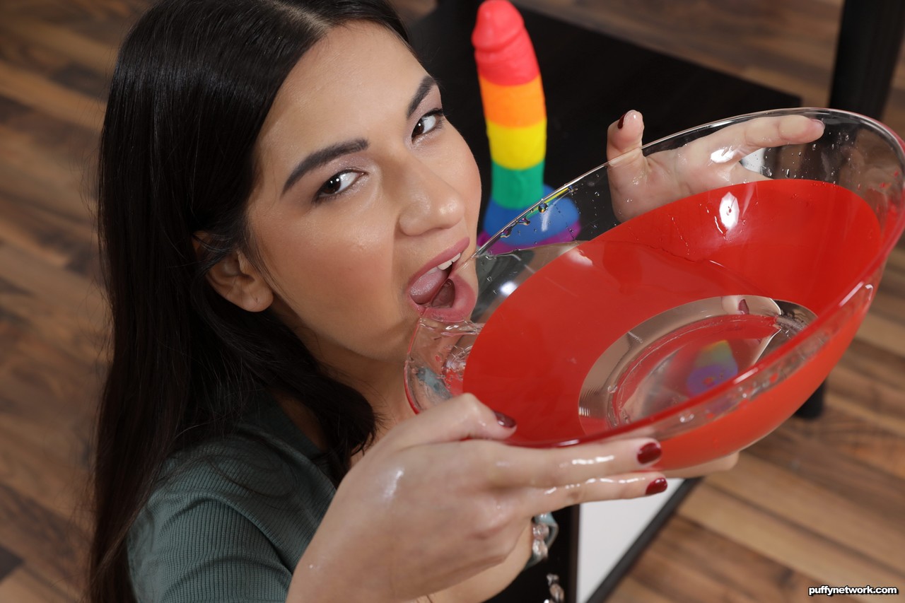 Sexy Brunette Moona Drinking Her Own Piss While Masturbating In Heels - Photo 8 / 15