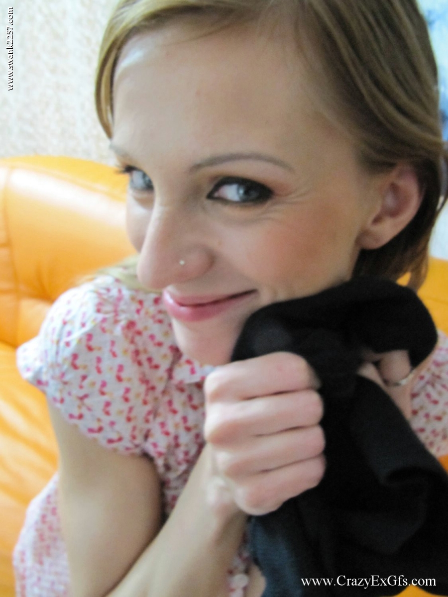 Amateur blonde MILF Olga Barz snaps steamy selfies while slipping fingers deep inside her tight cougar snatch, flaunting natural big tits and skinny curves in soaked panties.