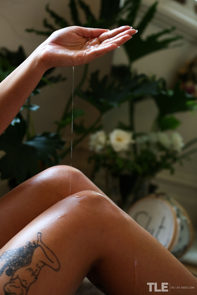 Collared Blake Wilde Oils Feet And Legs Before Masturbating