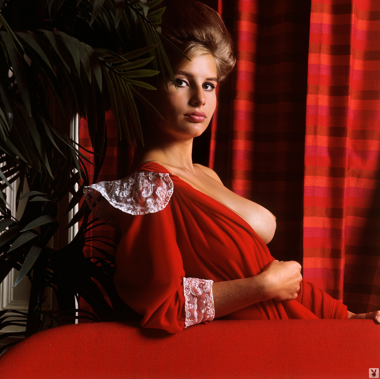 Vintage stunner Donna Michelle, the sexy flexible granny playmate, bares her perfect big tits in a classic retro centerfold strip—solo glamour at 70+.
