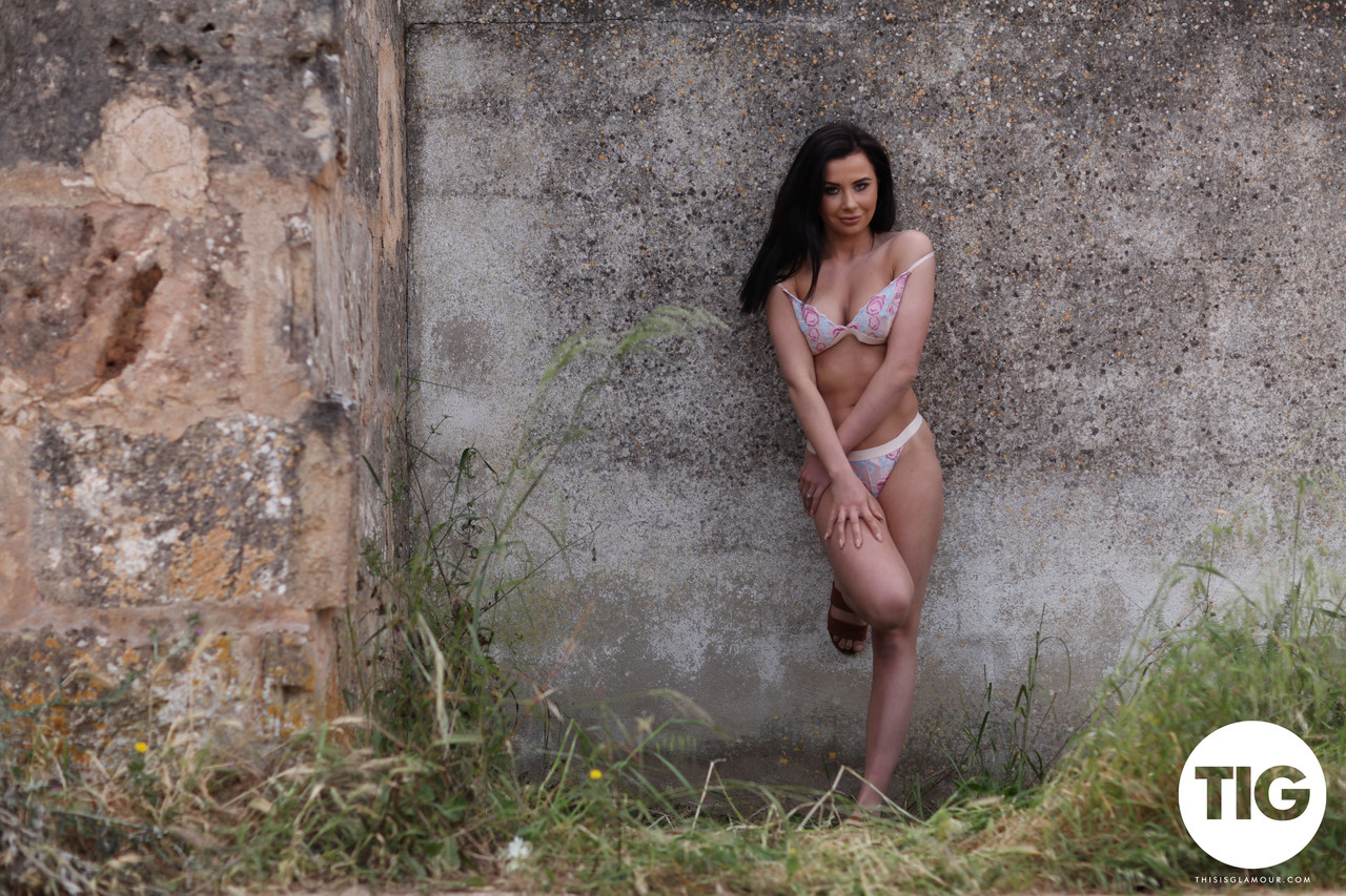 Petite British teen Jemima Page strips lingerie outdoors revealing tiny tits and beautiful pussy