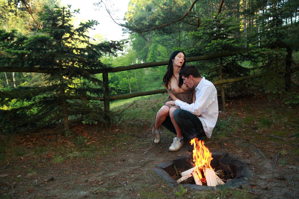 Outdoor Fire Pit Sex With Horny Couple - Photo 1 / 15
