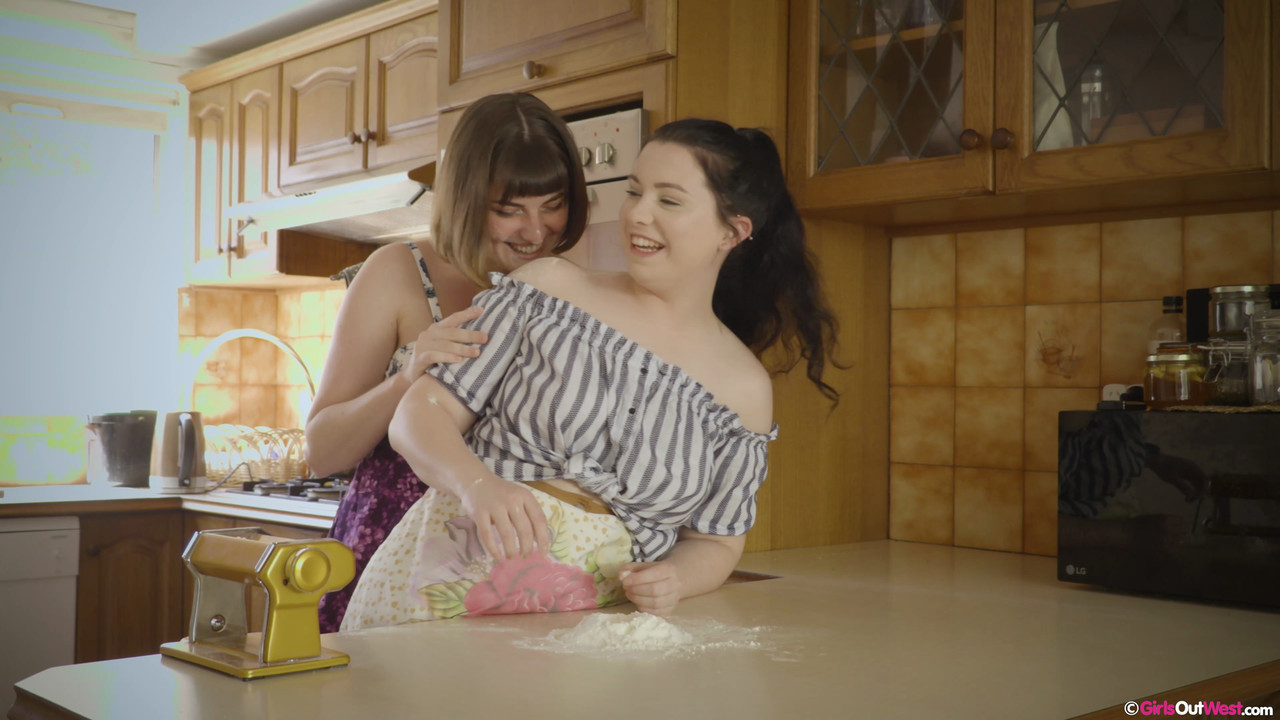 Chubby brunette Astrid Love and curvy Luci Q heat up the kitchen with steamy lesbian kissing, hairy pussy play, and ass-spreading action in this sizzling PAWG gallery.