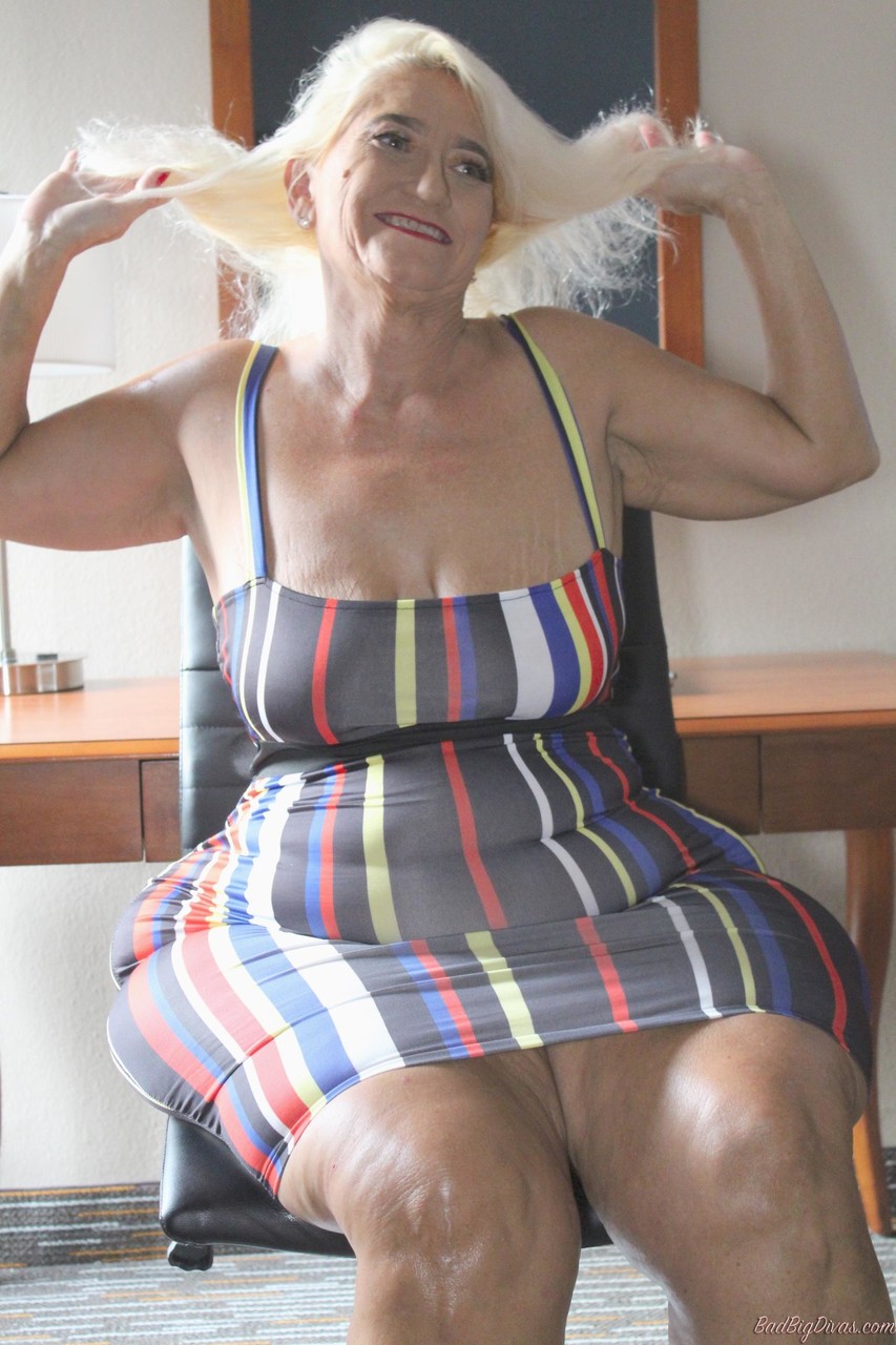 Blonde granny Amber Conners hikes up her dress to reveal her massive, curvy ass in this amateur BBW gallery of a very old, thick PAWG over 70.