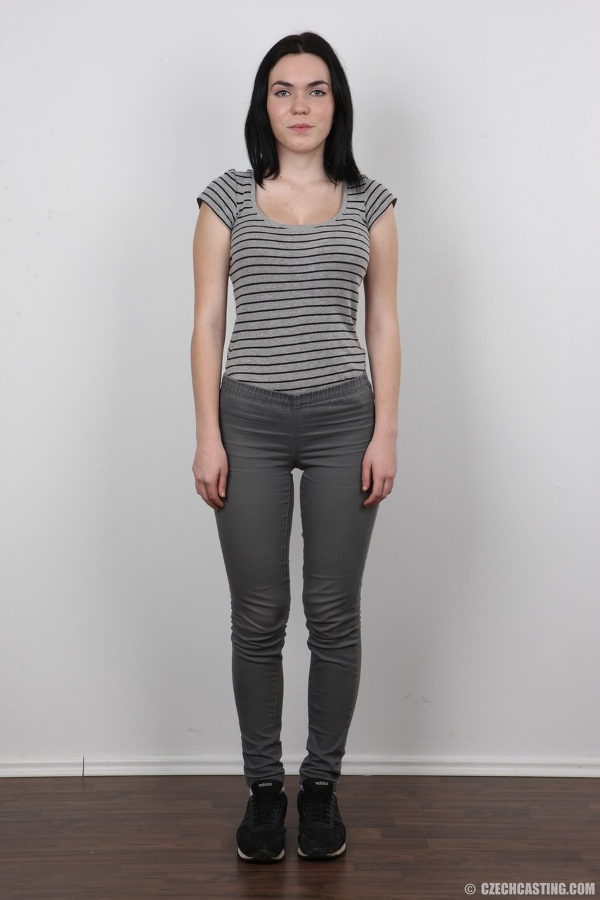 Amateur Czech teen Petra strips at casting, flaunting perky big tits with huge areolas and pointy nipples, tight PAWG ass in close-up, clothed tease to nude.