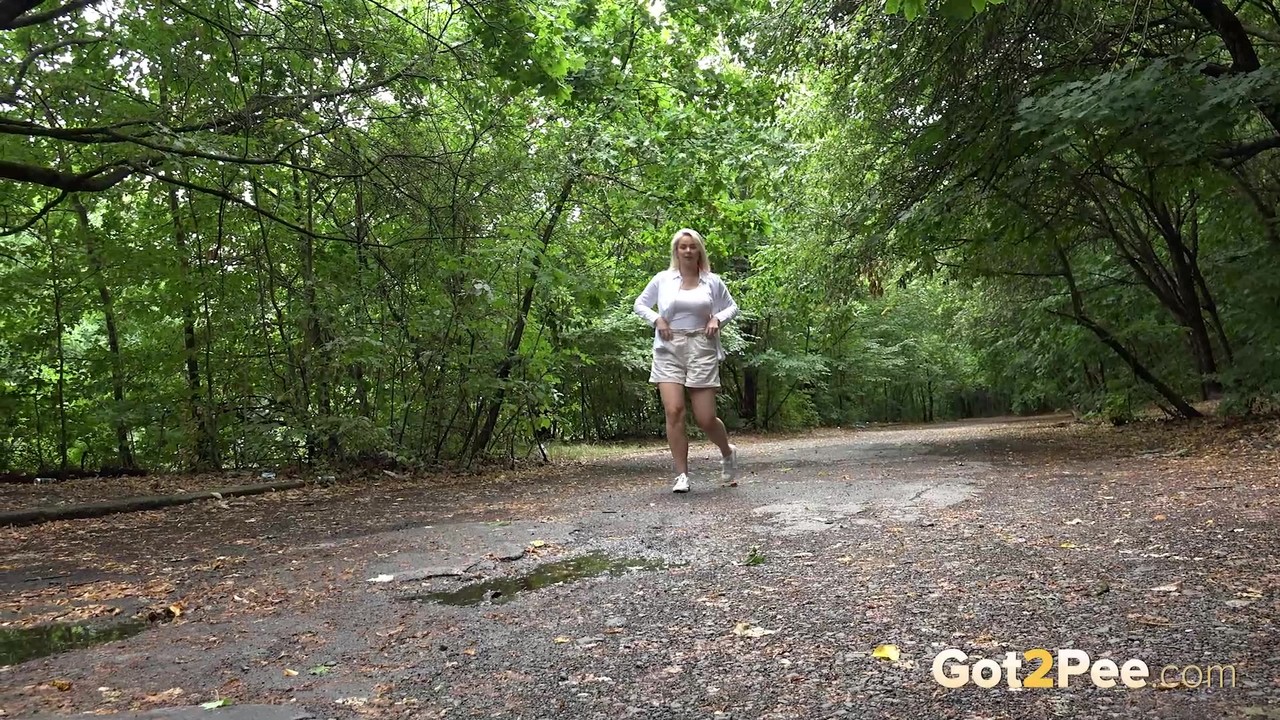 Pissing Babe Beautiful Blonde Close Up European Non Nude Outdoor Public Solo