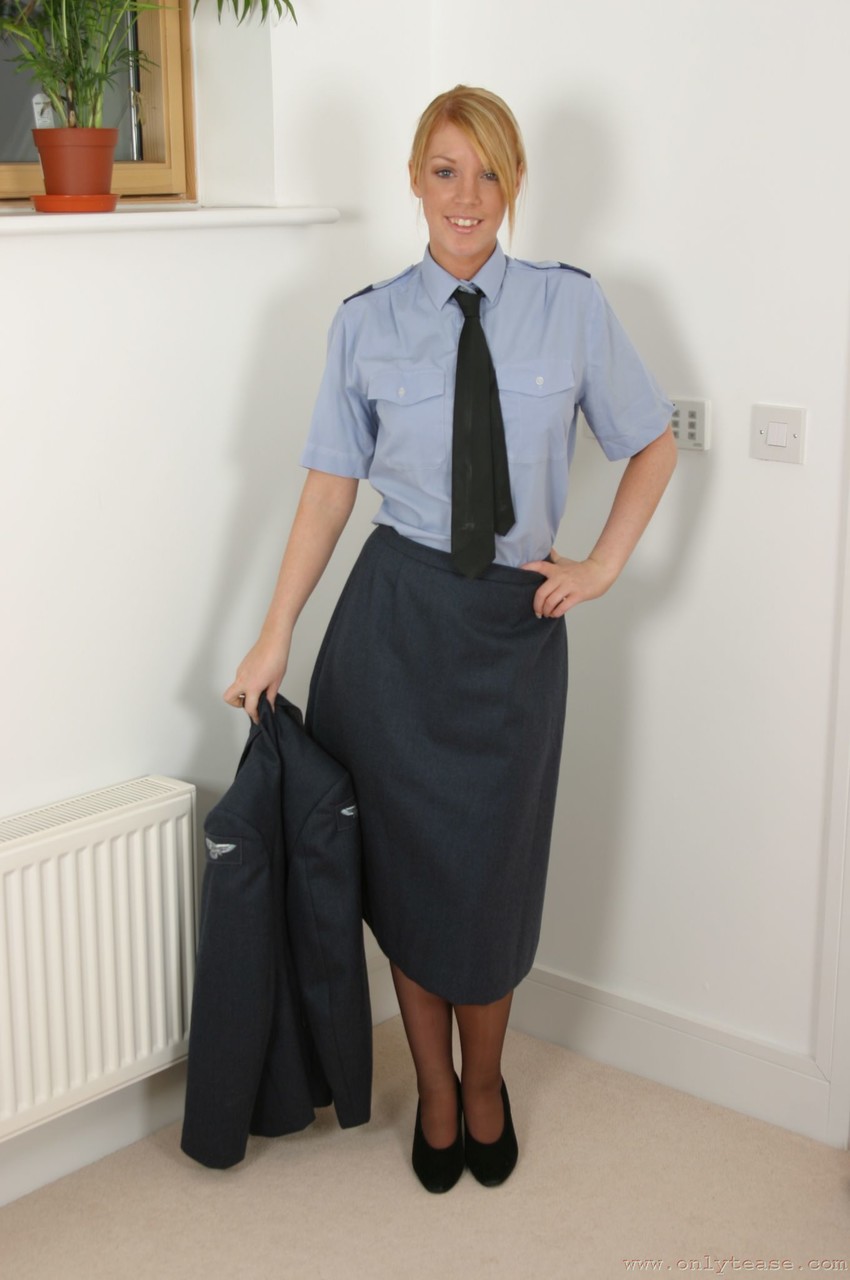 Sultry babe Fi teases in tight uniform and sheer stockings, peeling off her skirt to unveil big fake tits and perfect ass in a solo striptease that’ll leave you throbbing.