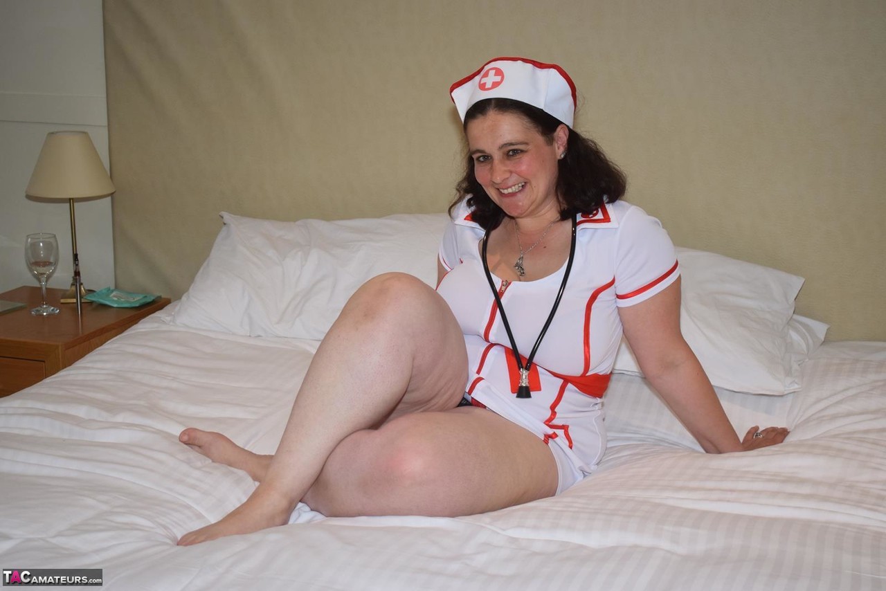 Overweight Brunette Nurse Unleashes Big Boobs On Bed - Gallery Information