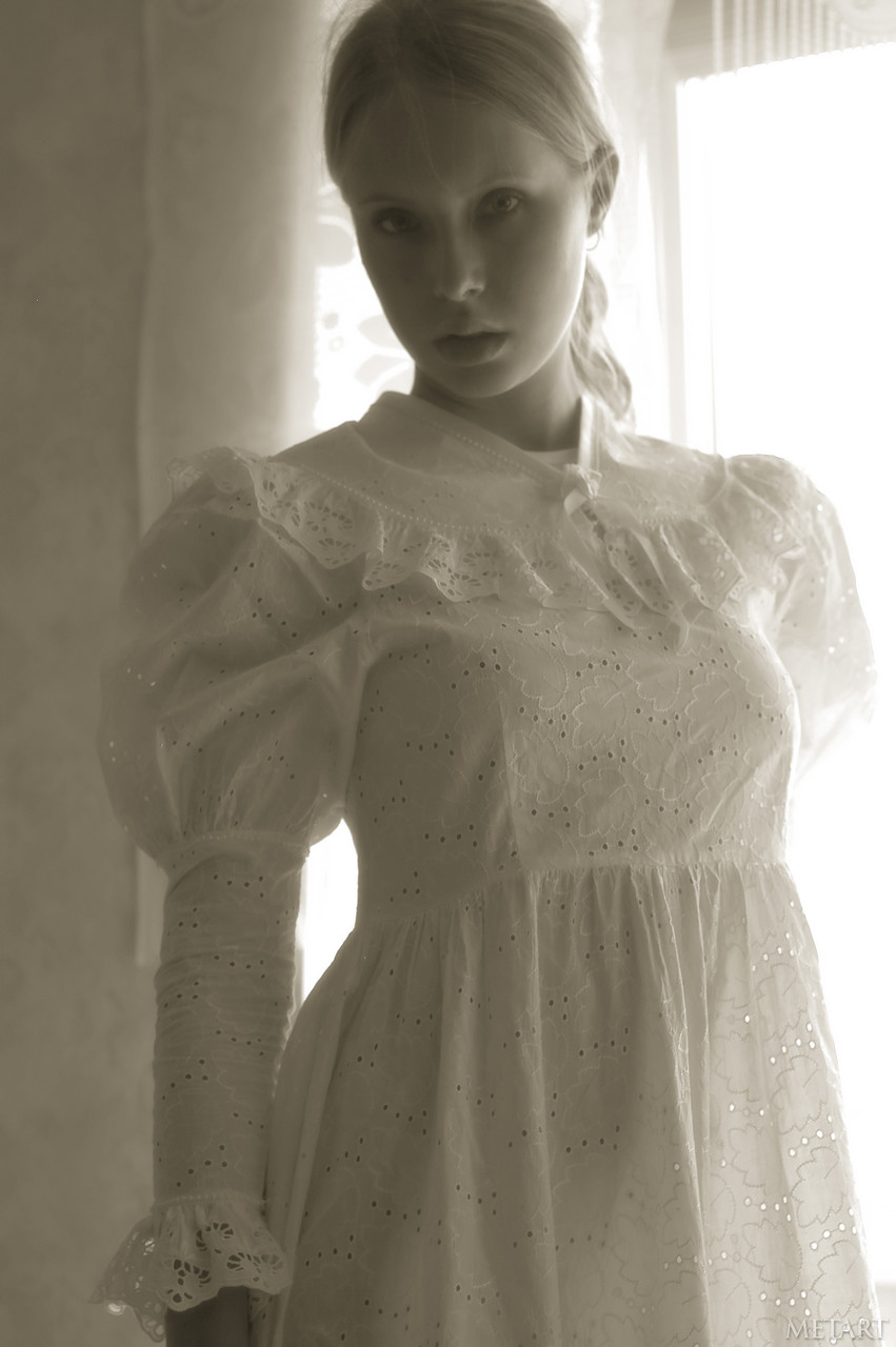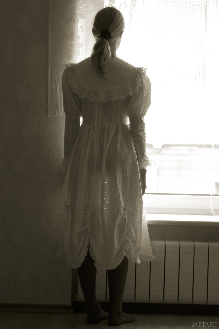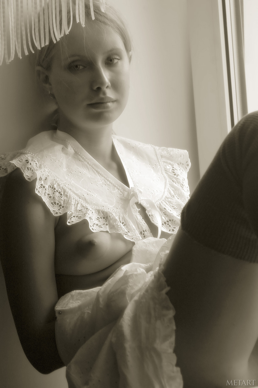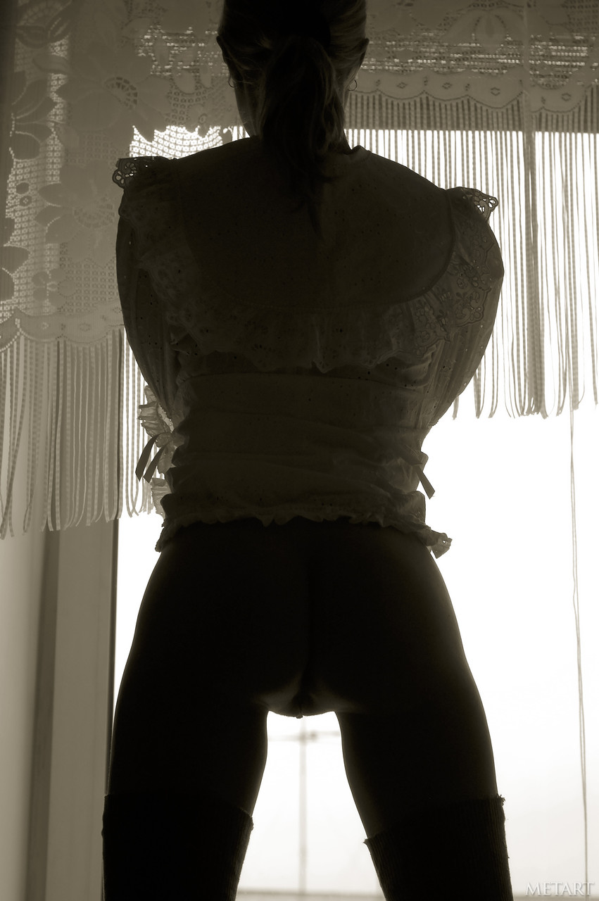 French Maid Yhivi Slowly Slips Off Her Uniform In Front Of Wide Open Window