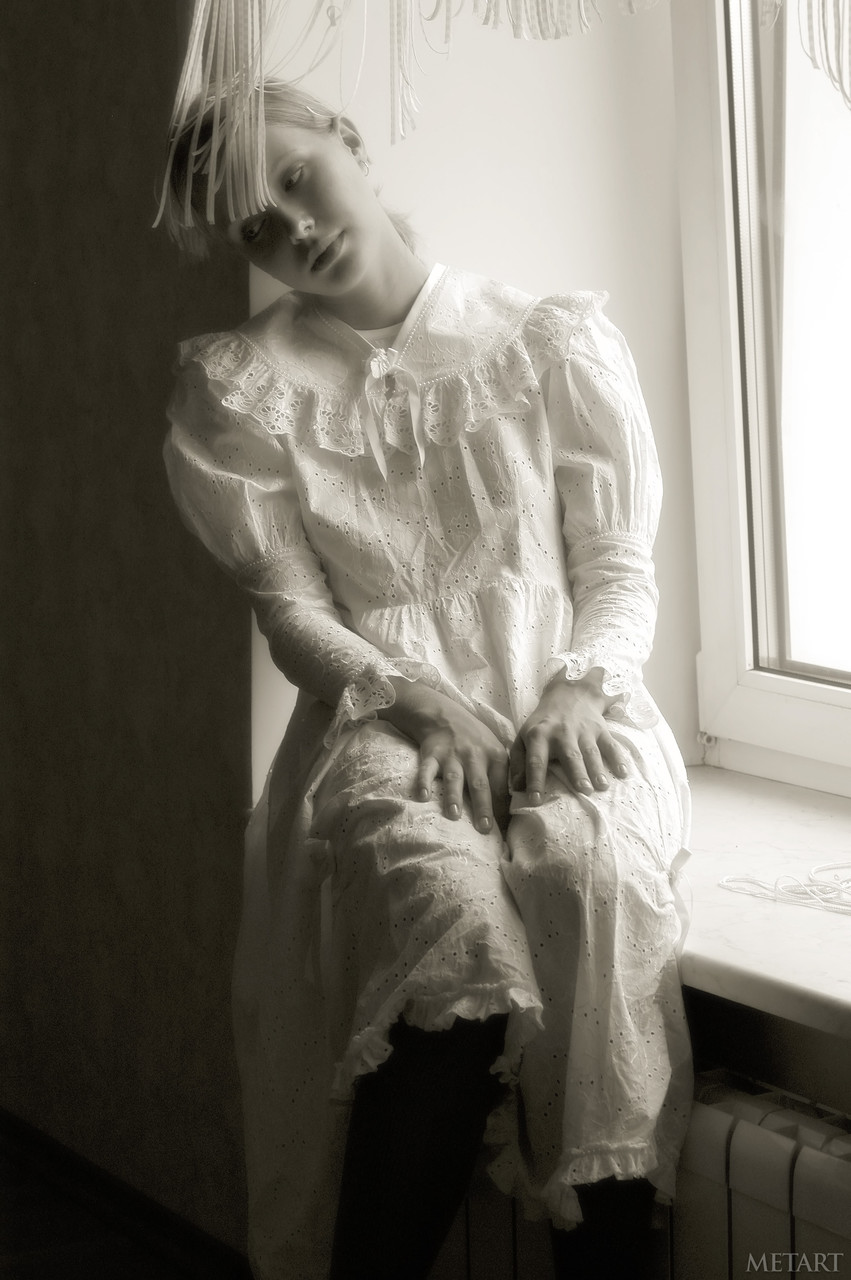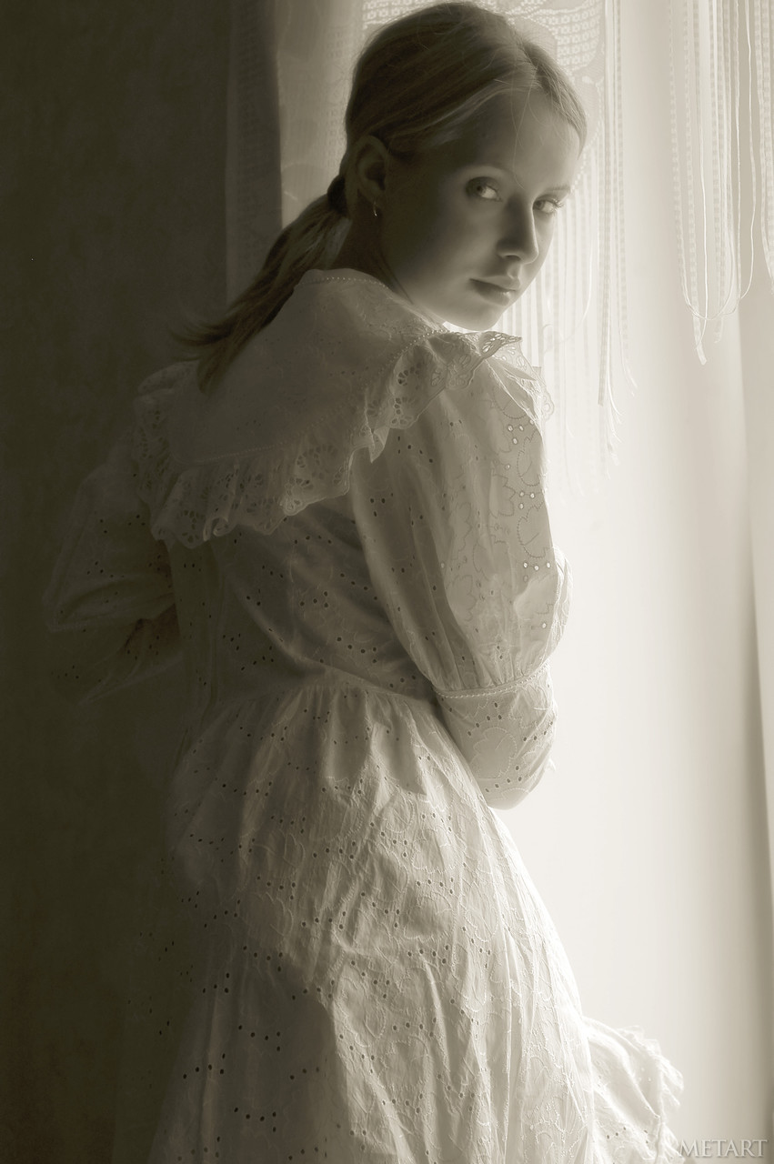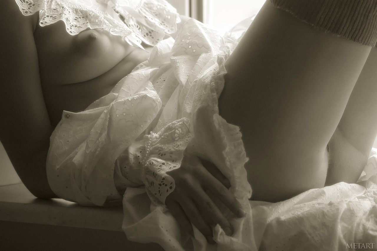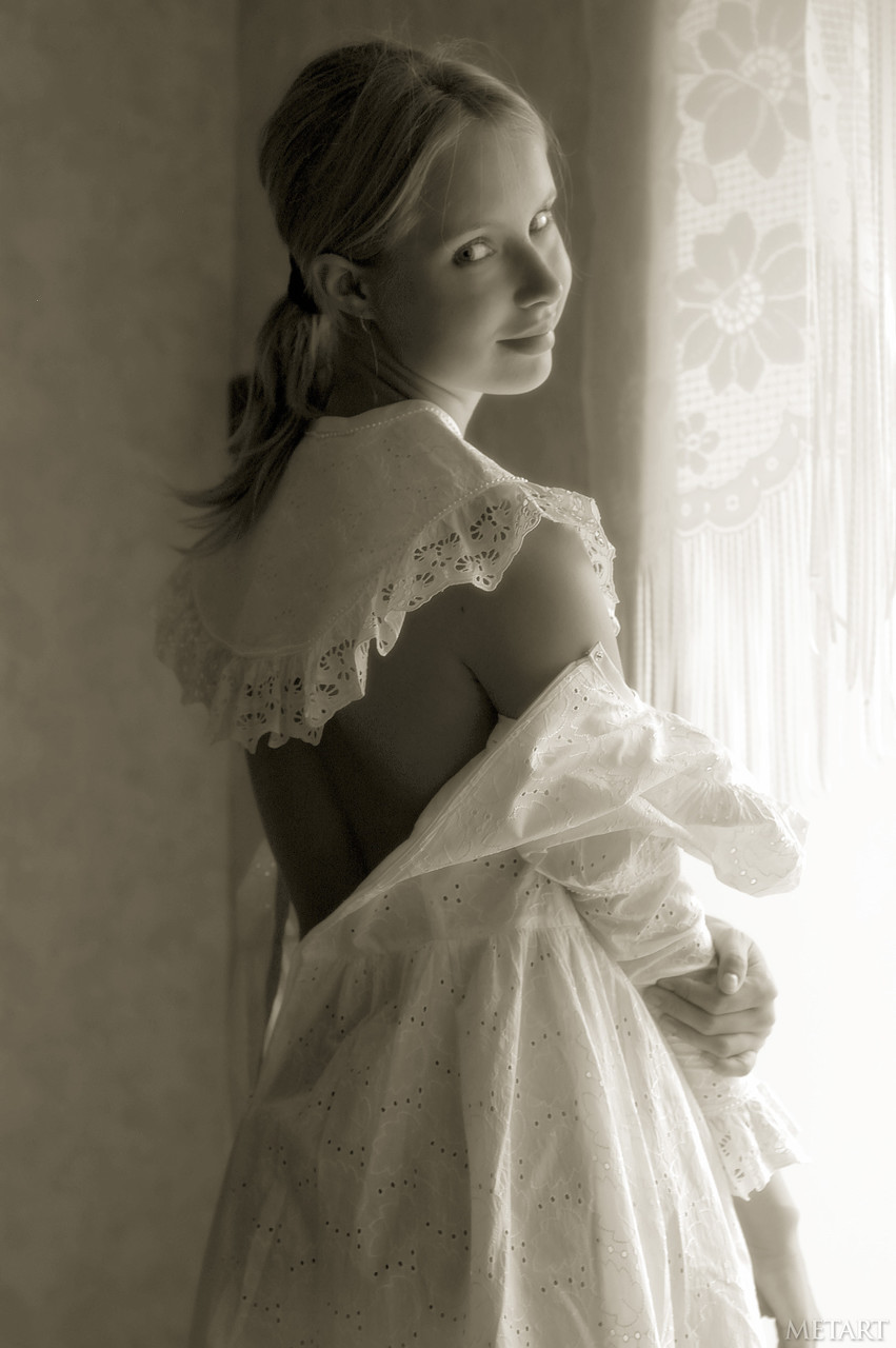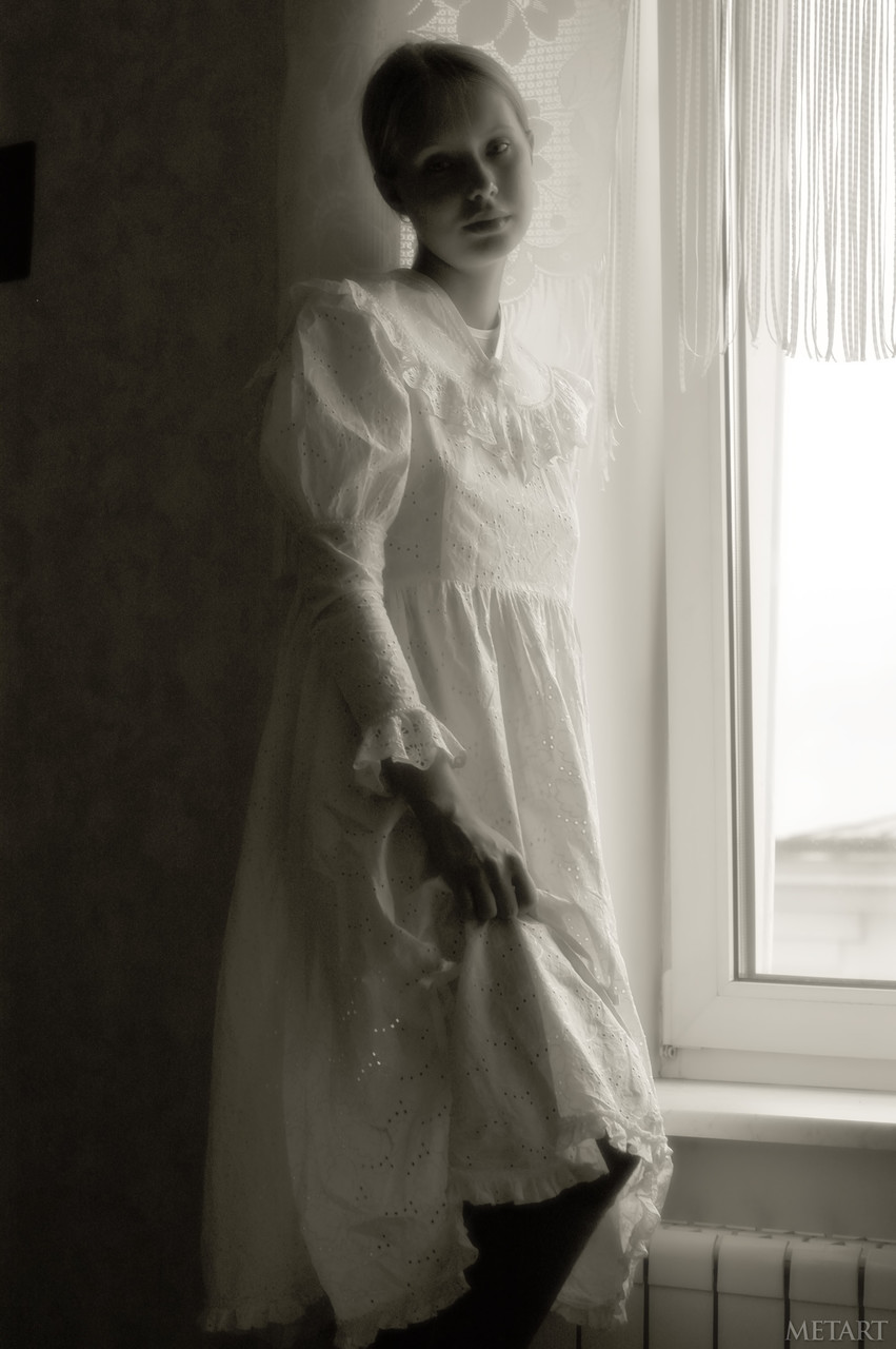 French Maid Yhivi Slowly Slips Off Her Uniform In Front Of Wide Open Window