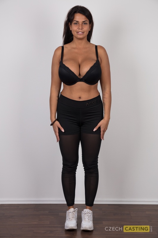 Mollige Ersttimerin zieht sich komplett aus, spreizt ihre glatte nasse Fotze in Großaufnahme beim BBW-Casting. Amateur-Brünette präsentiert große Titten und dicken Arsch.