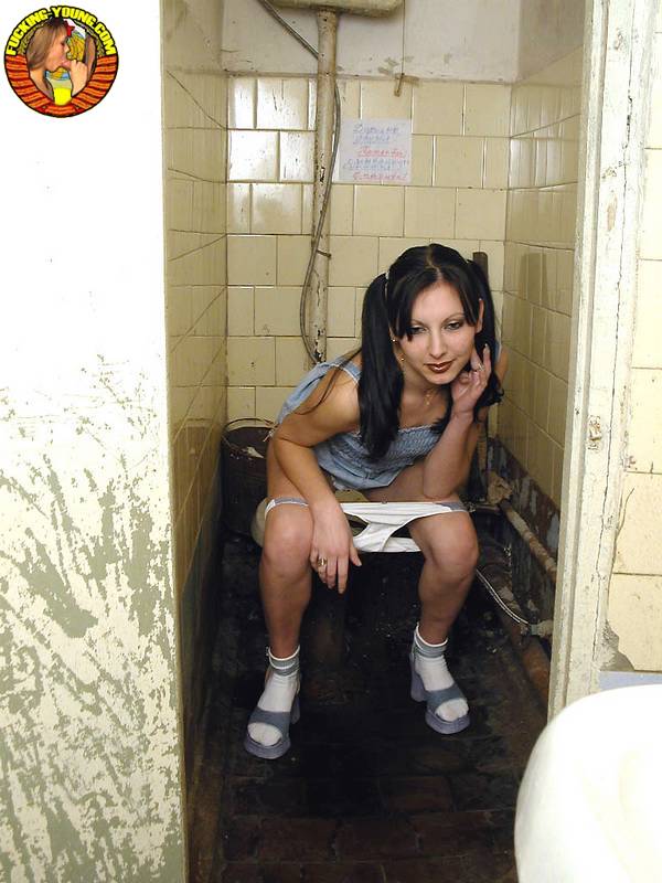 Teenager Mit Zöpfen Hockt Sich Auf Die Schmutzigste Toilette Zum Pinkeln - Galerie-Informationen