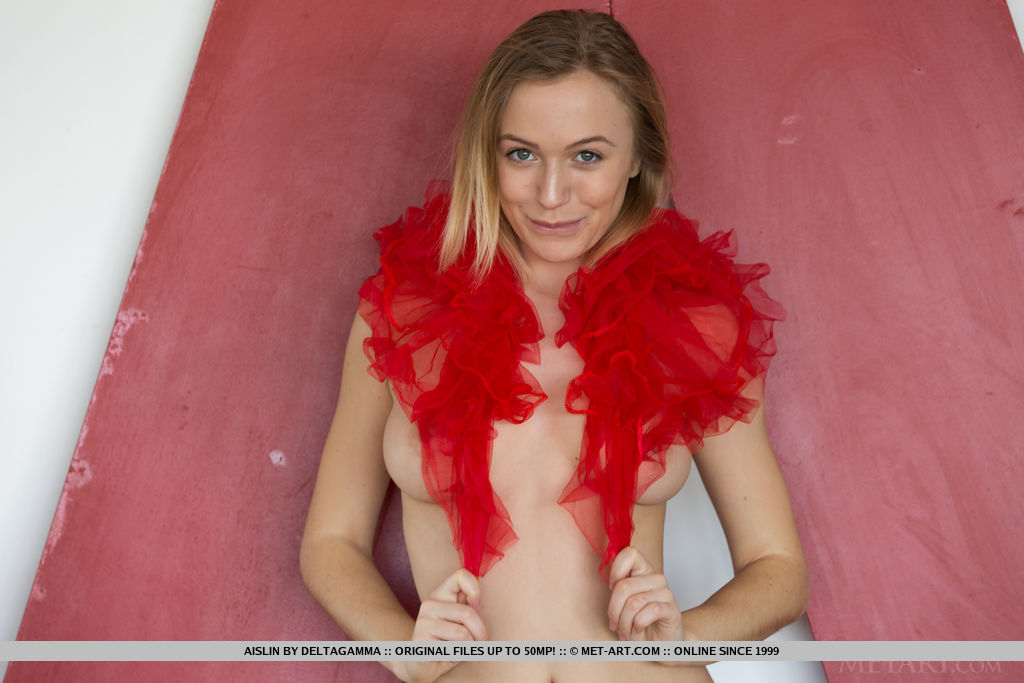 Teenagerin Aislin Zieht Rotes Tütü Aus, Um Völlig Nackt Zu Posing