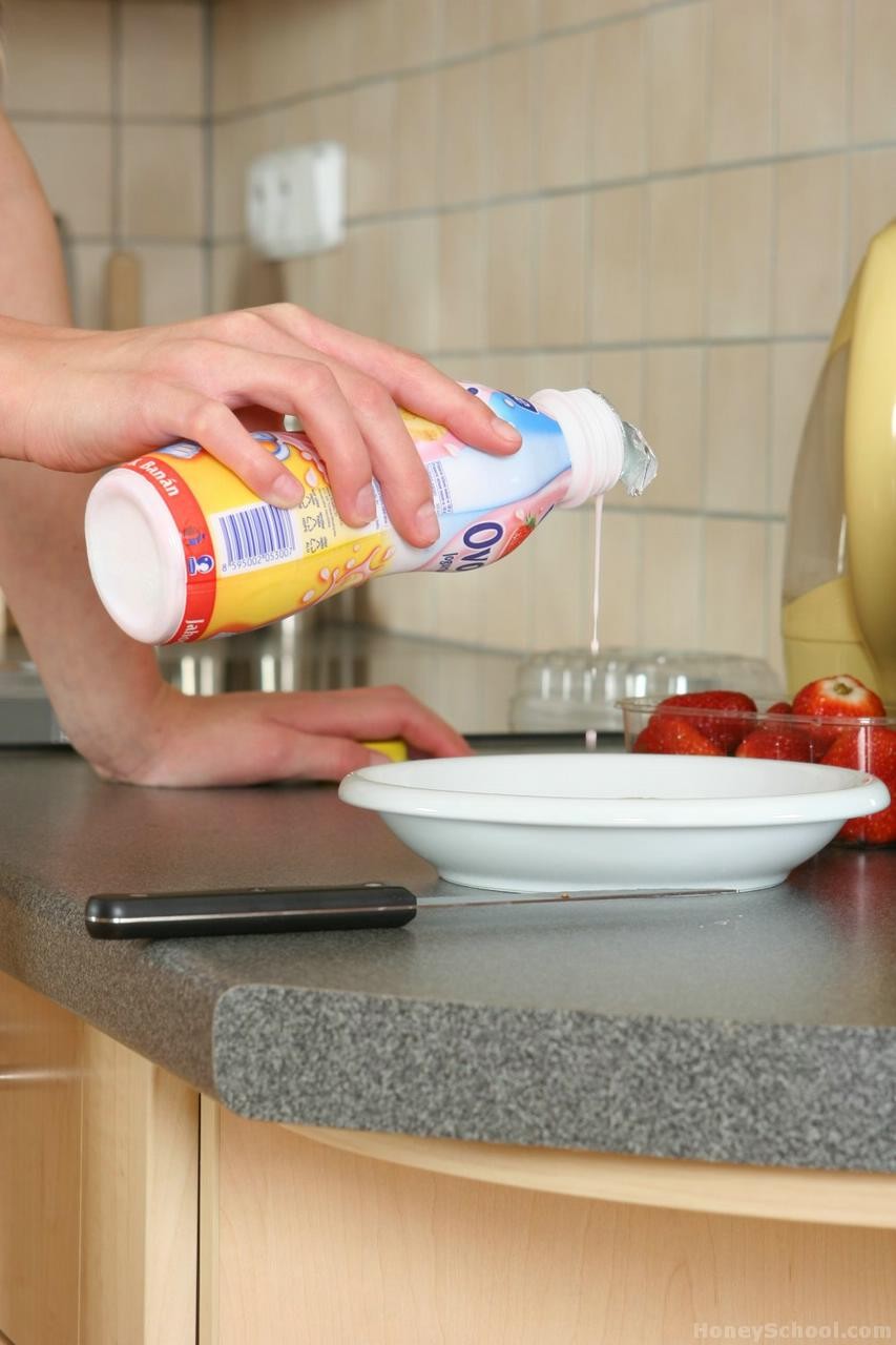 Heather Wild, dreckige europäische Pornodarstellerin, zieht sich in der Küche aus, um ihre großen Titten zu präsentieren — ungarisch-tschechische Blondine serviert Solo-Tease für Euro-Porno-Fans.