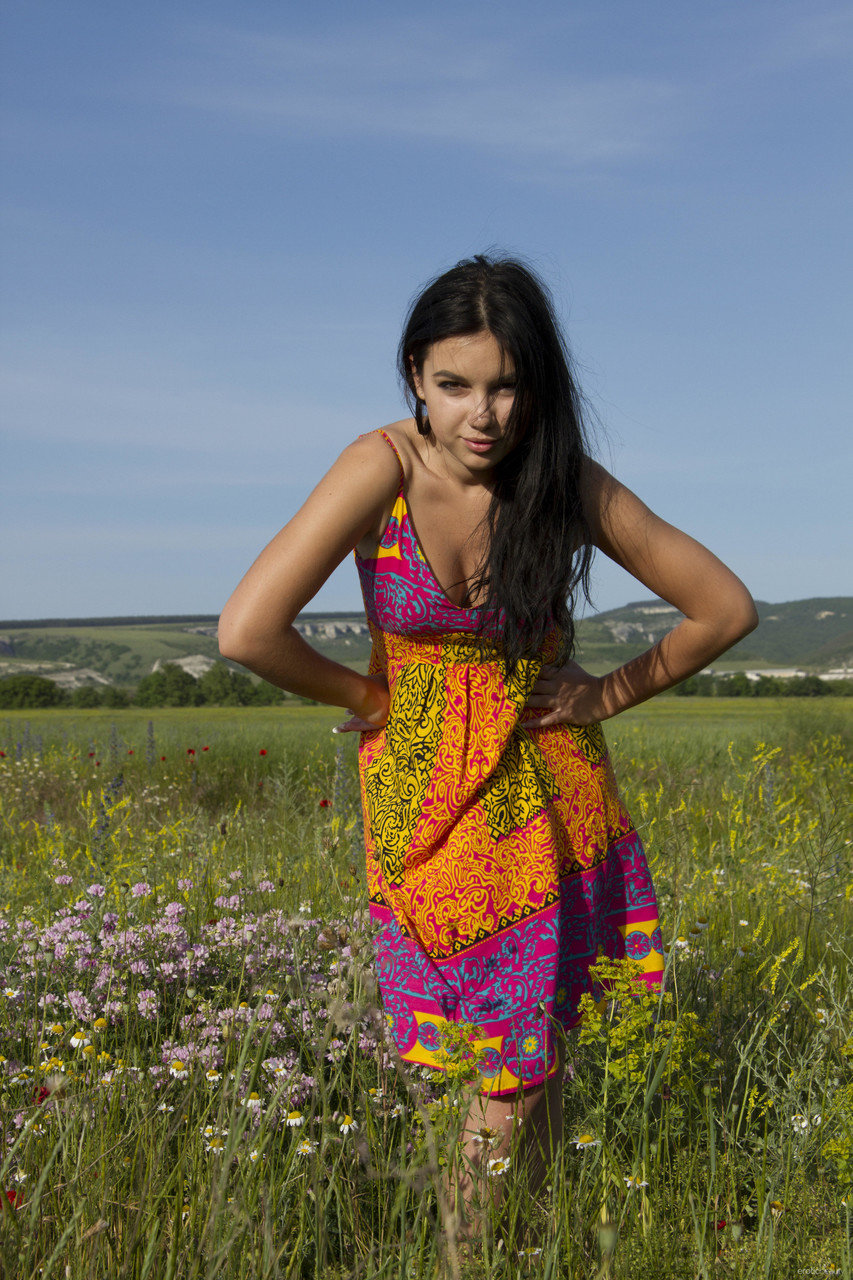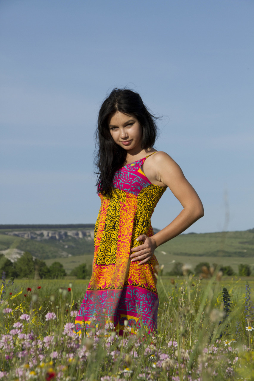 Erotic Beauty Rada A stuns in outdoor glamour XXX pics: perfect teen body, shaved pussy, B-C cup tits, hard nipples, smooth armpits, clothed and naked babe tease.