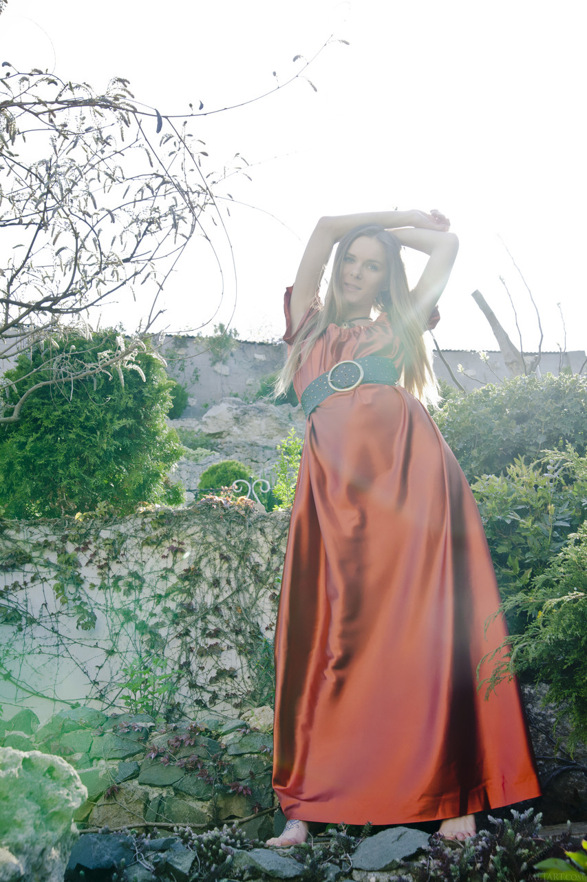 Ukrainian teen Katie A strips nude outdoors, spreading her perfect petite ass and pussy in glamorous Met Art gallery of natural, athletic beauty.