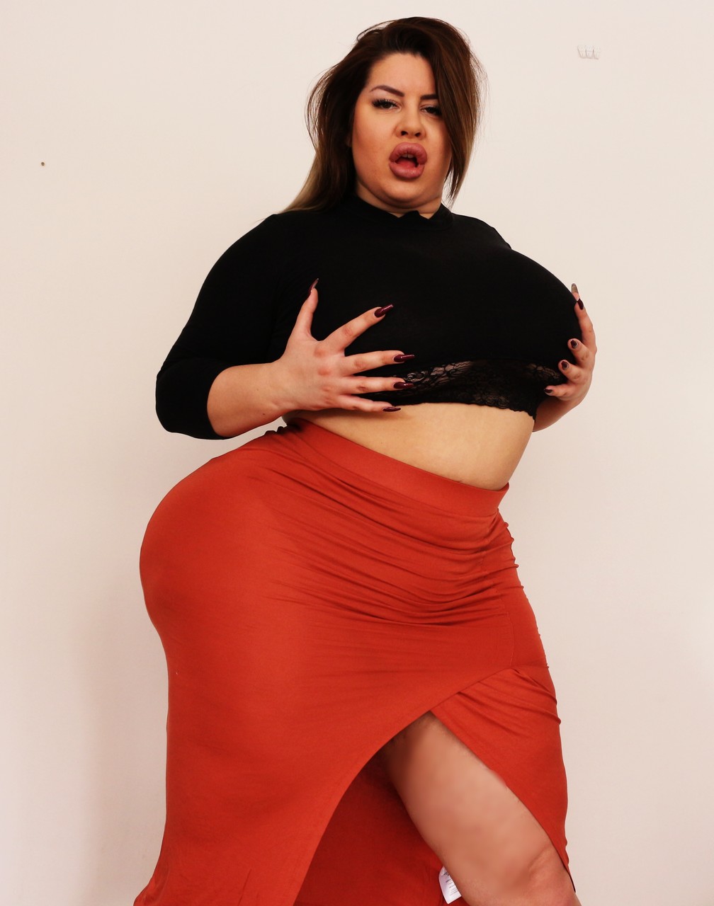 La voluptuosa PAWG MILF Natasha Crown se exhibe en una falda ajustada, luciendo su enorme trasero gordo y sus grandes tetas BBW - muslos gruesos, caderas anchas, perfección no desnuda.