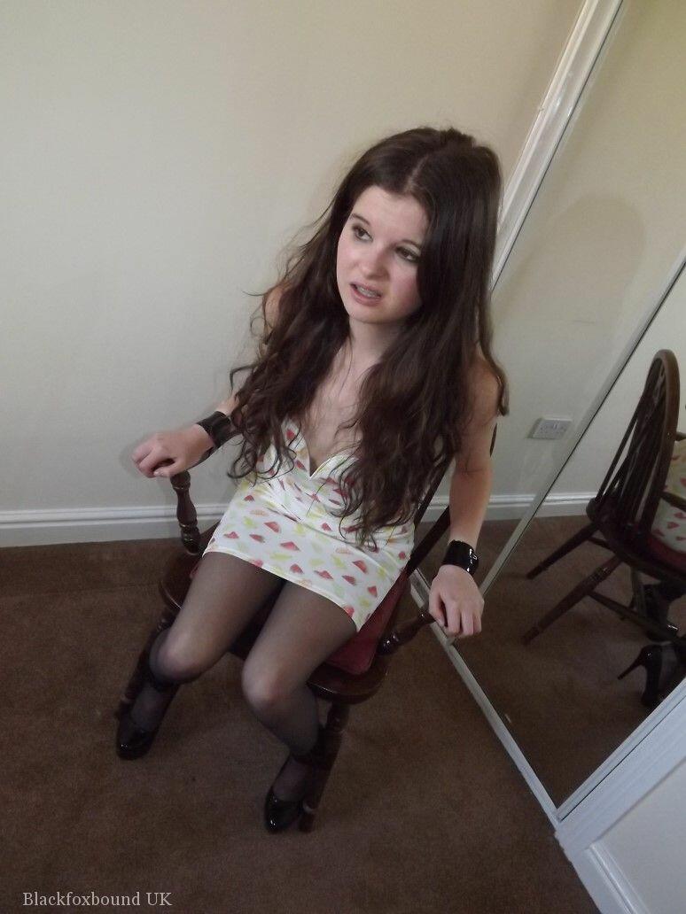 Amordazada Y Restringida Tamara Se Mira En El Espejo Vestida