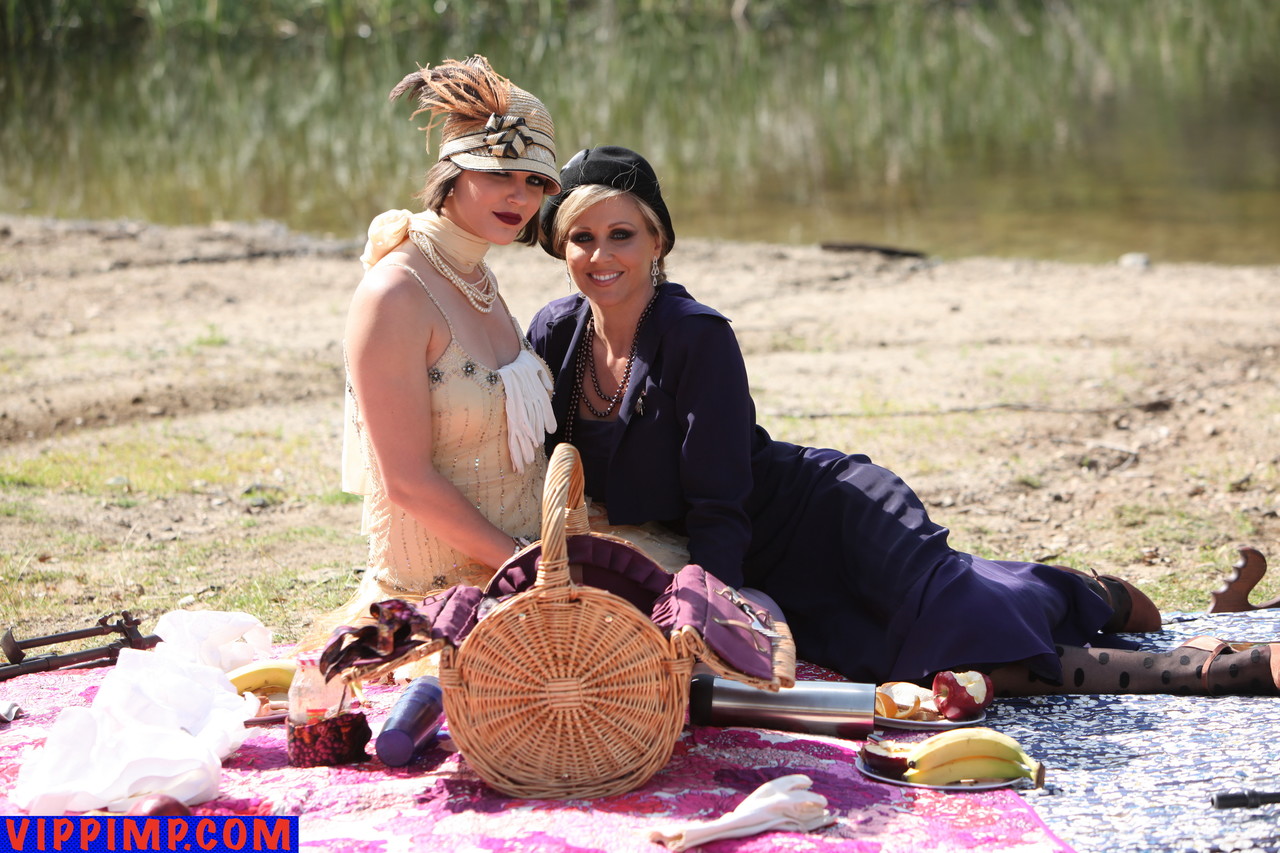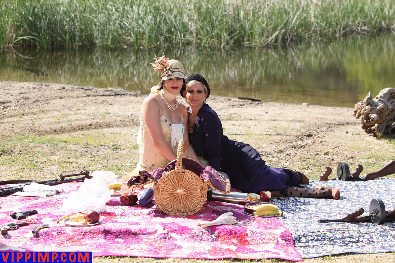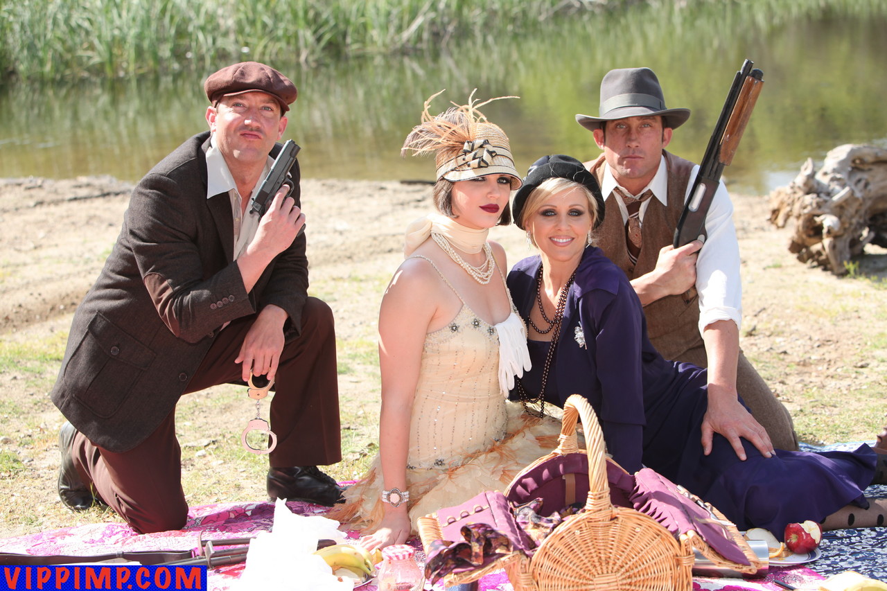 Fiesta VIP de proxenetas con las leyendas Bobbi Starr, Dylan Ryder, Julia Ann: cosplay vintage, coche retro, provocación al aire libre con gafas—estrellas clásicas calientan el coche sin desnudarse.